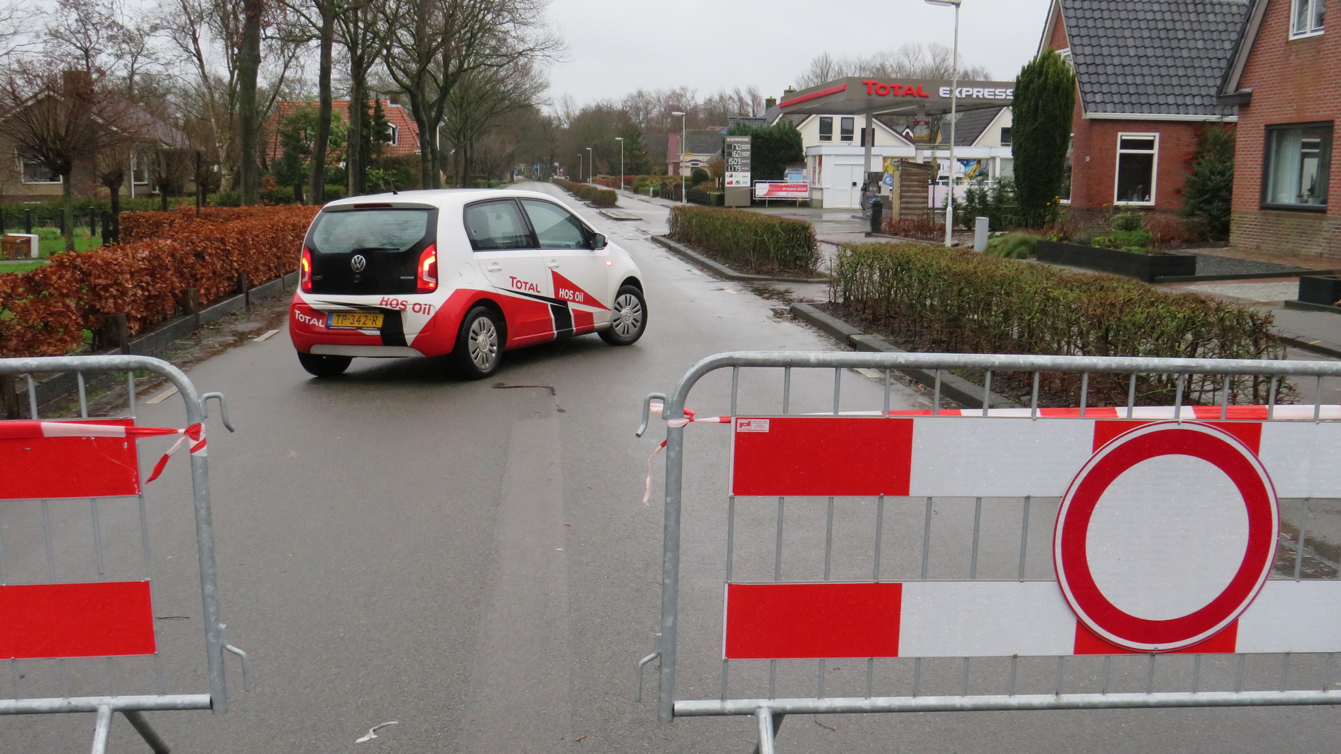 Door de storm Bella kreeg de constructie het flink te verduren. Omwonenden hebben eerder al aangeven dat ze het bouwwerk niet ‘vertrouwden’. Uit voorzorg sloot de politie de weg af voor doorgaand verkeer. Het station is door HOS Oil gesloten, twee vrachtwagens zijn tijdelijk onder de luifel gezet om verder gevaar te voorkomen.