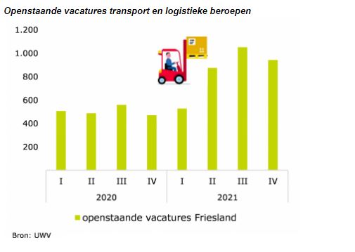 Ook in de sector transport en logistiek nam het aantal WW-uitkeringen in Friesland verder af naar 258 eind maart 2022. In het afgelopen jaar halveerde het aantal WW-uitkeringen in deze sector bijna. Het aantal transport & logistieke vacatures in Friesland steeg fors naar 942 eind 2021. Tegenover een groeiend aantal vacatures staan steeds minder beschikbare werkzoekenden. Hierdoor zijn er veel kansen op werk. Bijvoorbeeld als vrachtwagenchauffeur, expediteur en transportplanner.