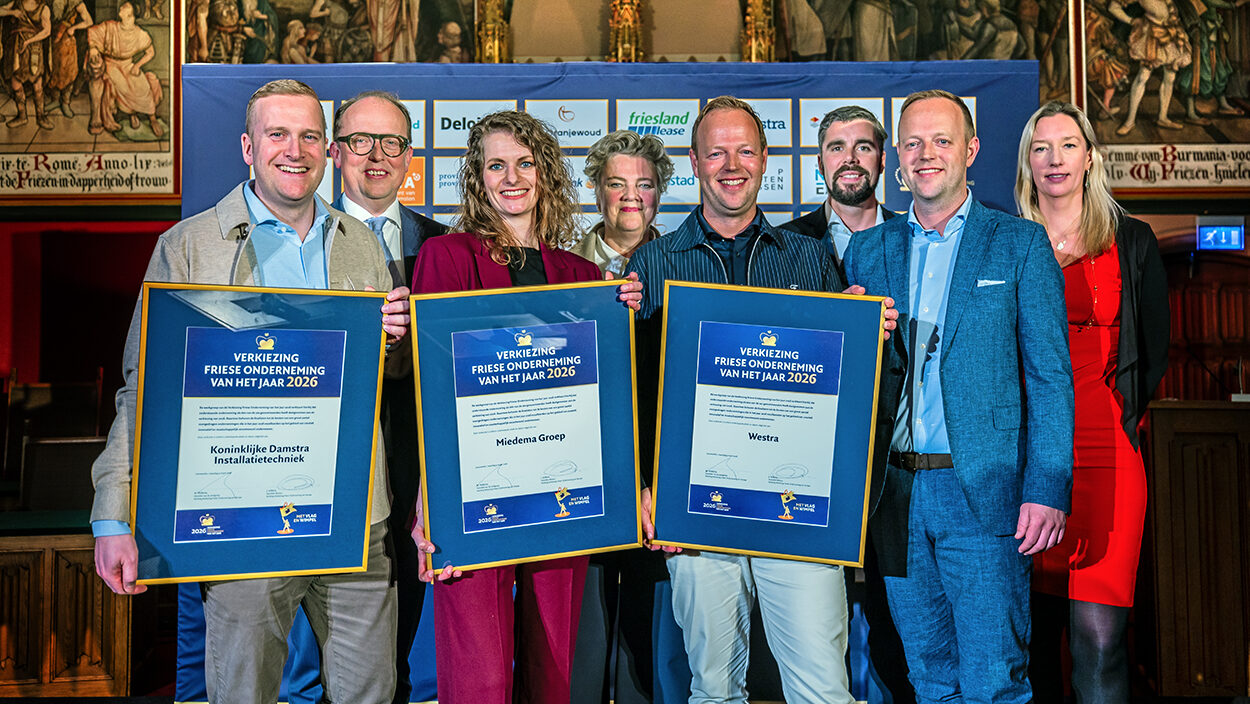 LEEUWARDEN – Koninklijke Damstra Installatietechniek uit Driezum, Miedema Groep uit Leeuwarden en Westra uit Franeker zijn de trotse finalisten van de Verkiezing Friese Onderneming van het Jaar (VFO) 2026. Maandag 9 maart streden de genomineerde ondernemingen in de statenzaal van de Provinsje Fryslân voor een finaleplaats.