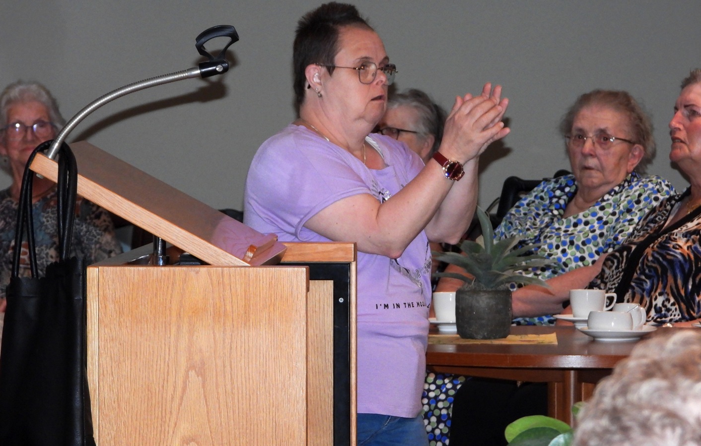 Het loopt naar het eind van het seizoen en het is al bijna een traditie dat deze groep rond deze tijd in Meckama State komt zingen en spelen. Voor de pauze werden er vol overgave christelijke versjes gezongen, na de pauze stonden er Friese en Nederlandstalige liederen op het repertoire. Het was voor de bewoners weer een geslaagde avond.