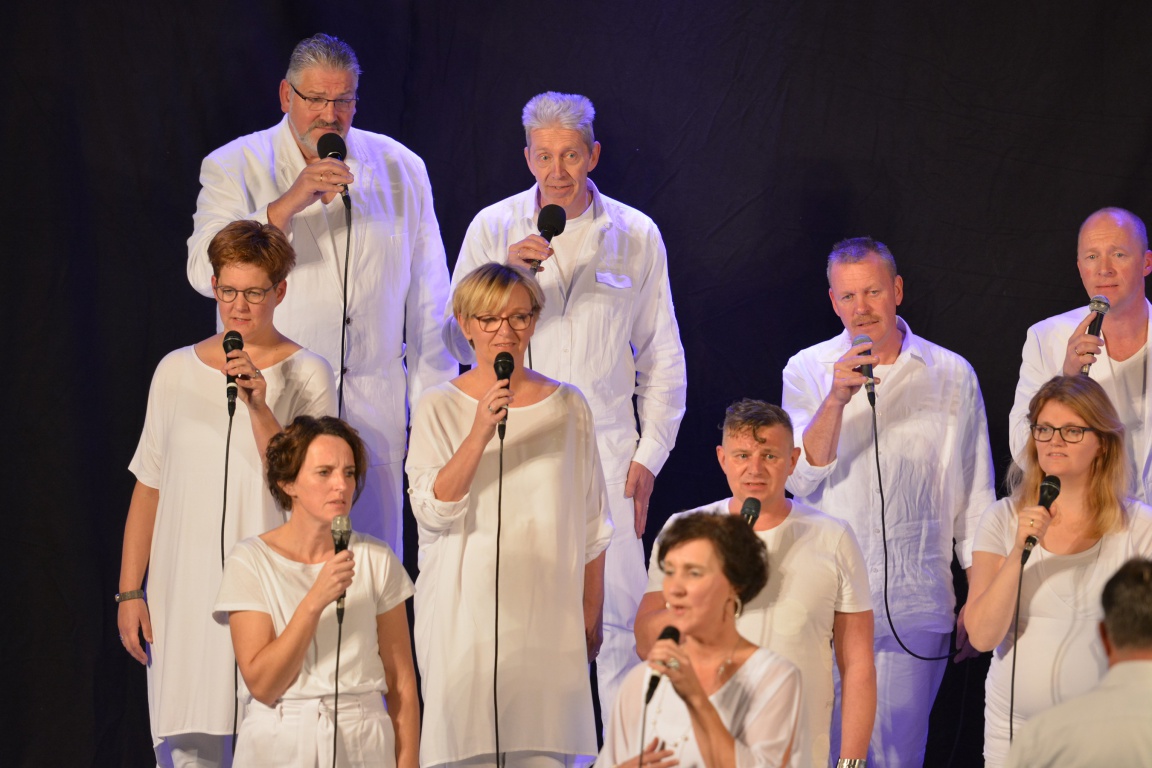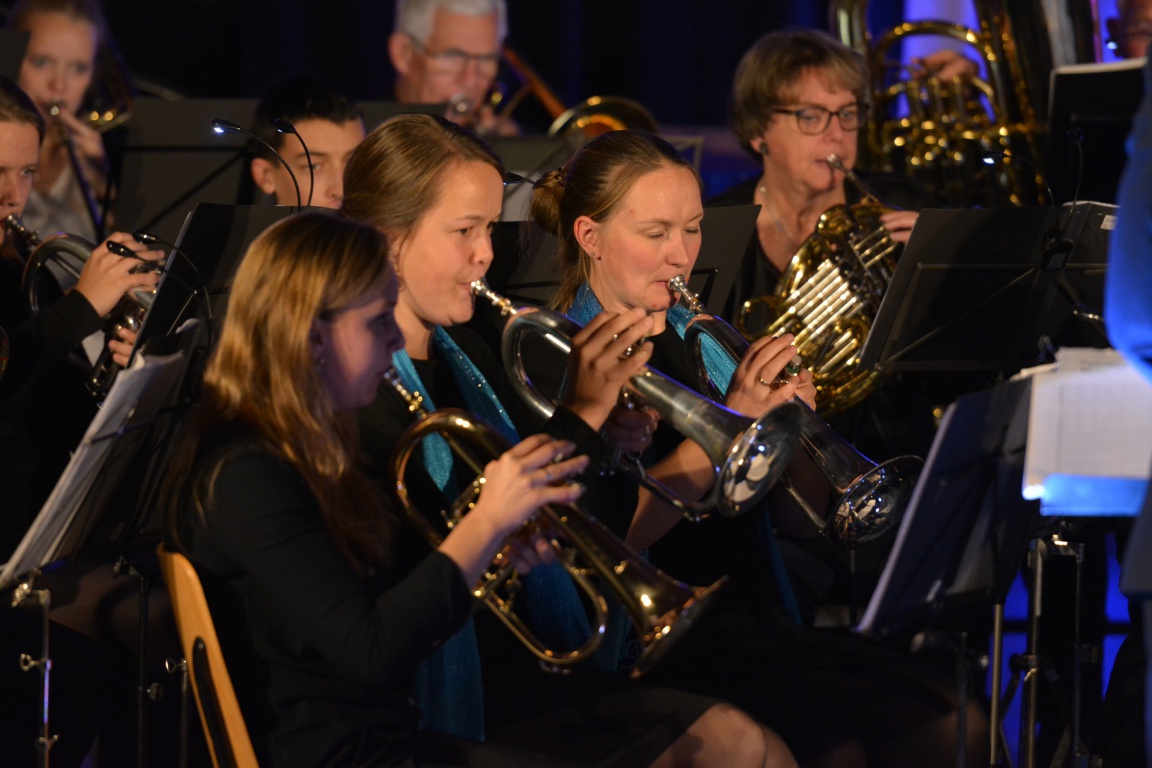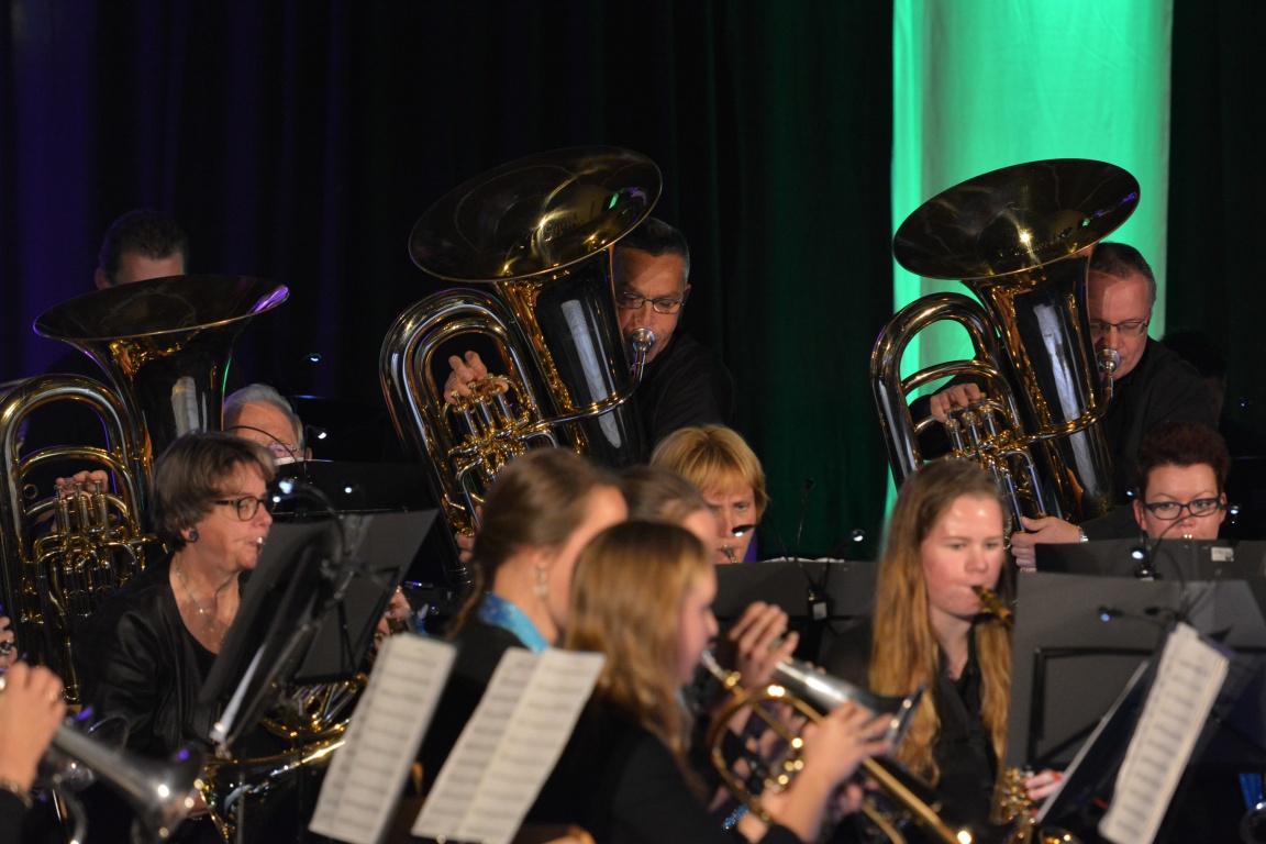 Presentatrice Jeltsje nam het publiek vervolgens mee naar de gelijkenissen van de beide dirigenten en een stukje geschiedenis van de beide verenigingen. Sat was het openingsnummer van het blokje van Oranje, gevolgd door een mooie medley van de Beatles verwerkt in het arrangement Briljant Beatles, Op deze herkenbare muziek werd door het publiek zachtjes meegewiegd. (A)Musing moment werd het zware werk uitgenodigd om de solopartij voor hun rekening te nemen de vijf bas blazers brachten een mooie zware solo, onder ander door het oudste lid van Oranje, Willem Wittermans, petje af. Ook hier weer een groot applaus van het ongeveer 200 tellend publiek. Tijdens Merry go Round presenteerde elke blazerssectie zich door tijdens het muziekstuk te gaan staan. Na de gebruikelijke bedankjes en de dankend woorden richting publiek van de beide voorzitters, werd gezamenlijke God and God alone gezongen en gespeeld.