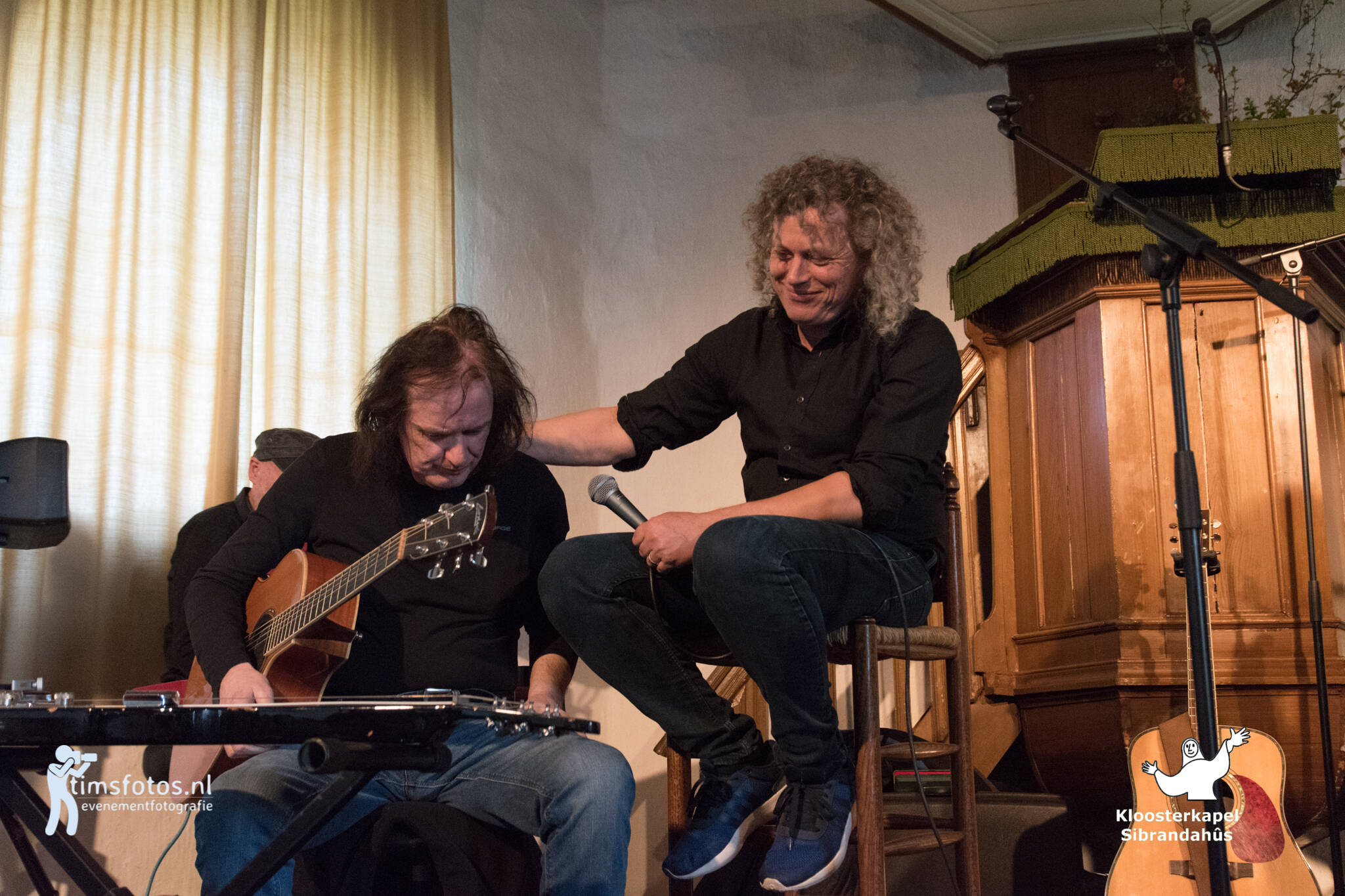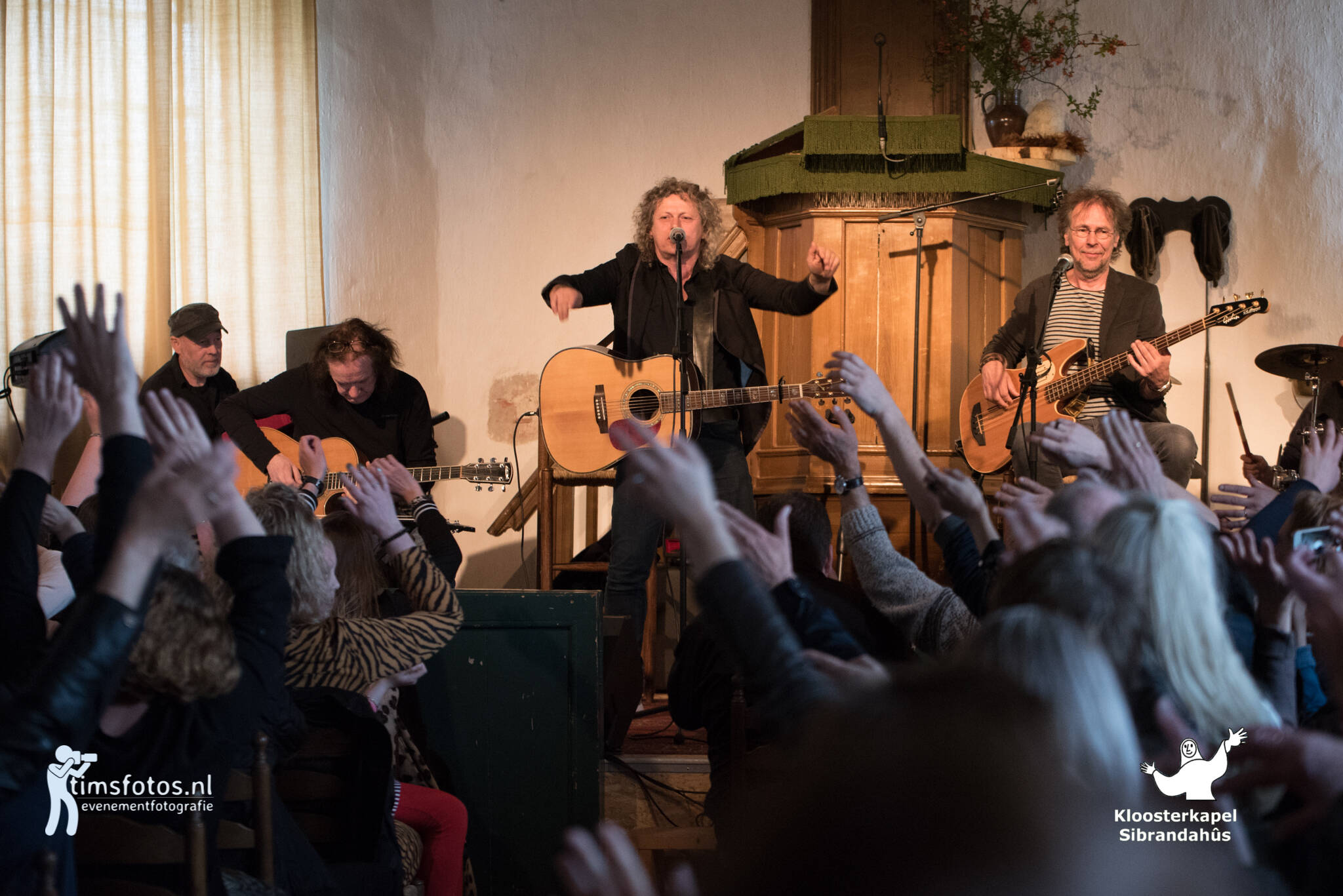 De bekende Friese popformatie De Kast gaf zondagmiddag 14 april een akoestisch miniconcert in Kloosterkapel Sibrandahûs.