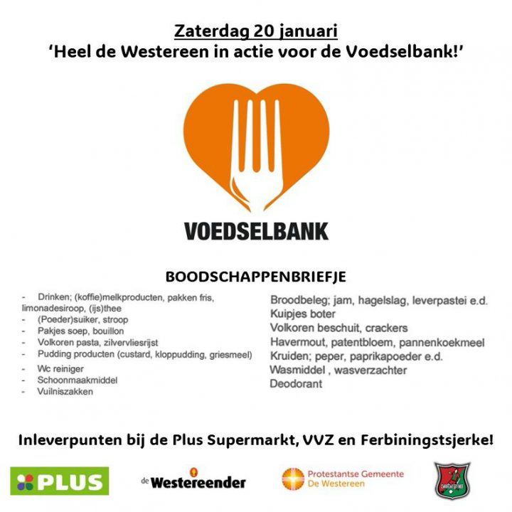 Op zaterdag kunnen mensen gedurende de dag boodschappen van het actielijstje inleveren bij supermarkt Plus, voetbalvereniging VVZ, en in de Ferbiningstsjerke. Wil je ook een bijdrage leveren? Koop dan artikelen van het boodschappenlijstje en lever ze in bij een van de inleverpunten.