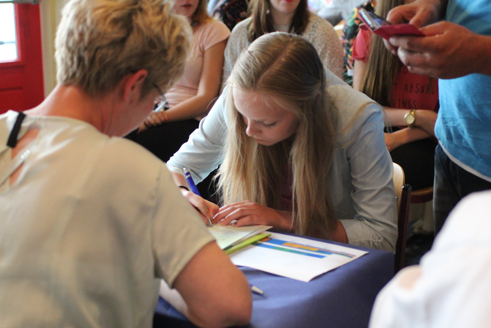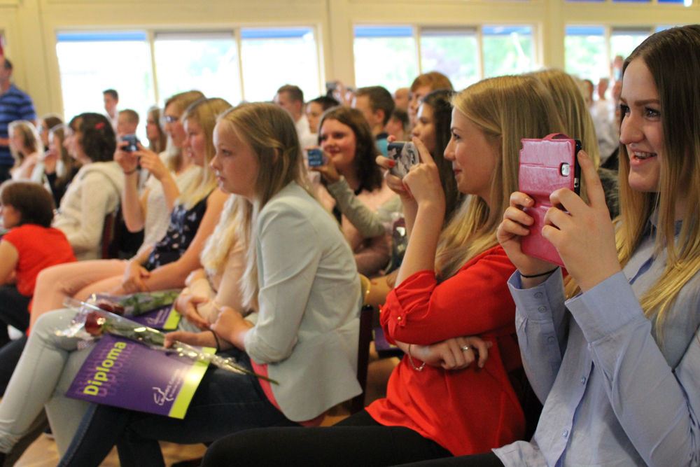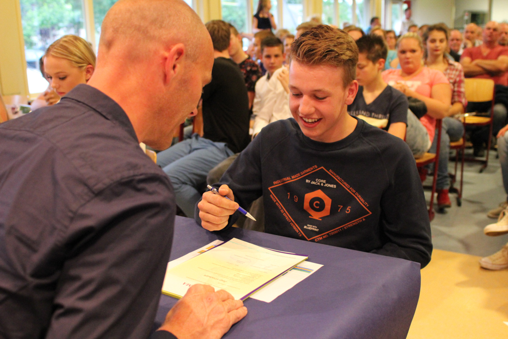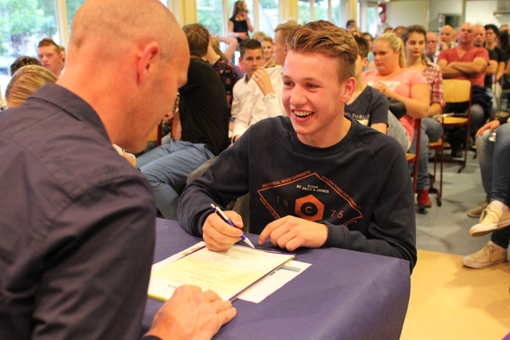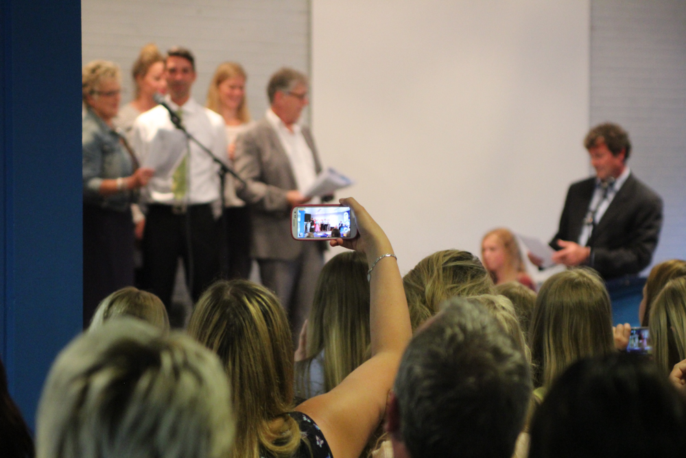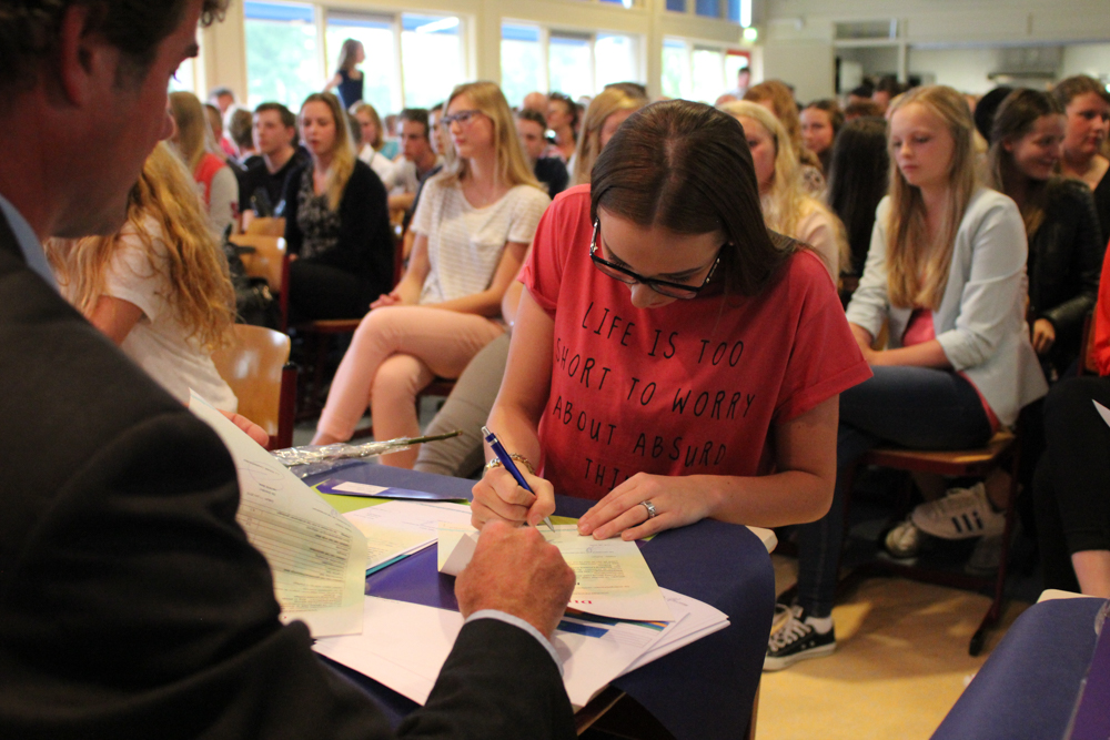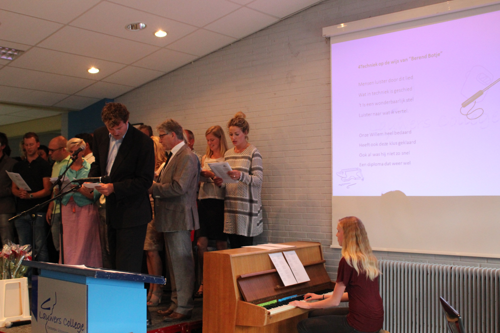 Na afloop was er de gelegenheid om docenten en andere medewerkers de hand te schudden en te bedanken om zo het jaar af te sluiten.
