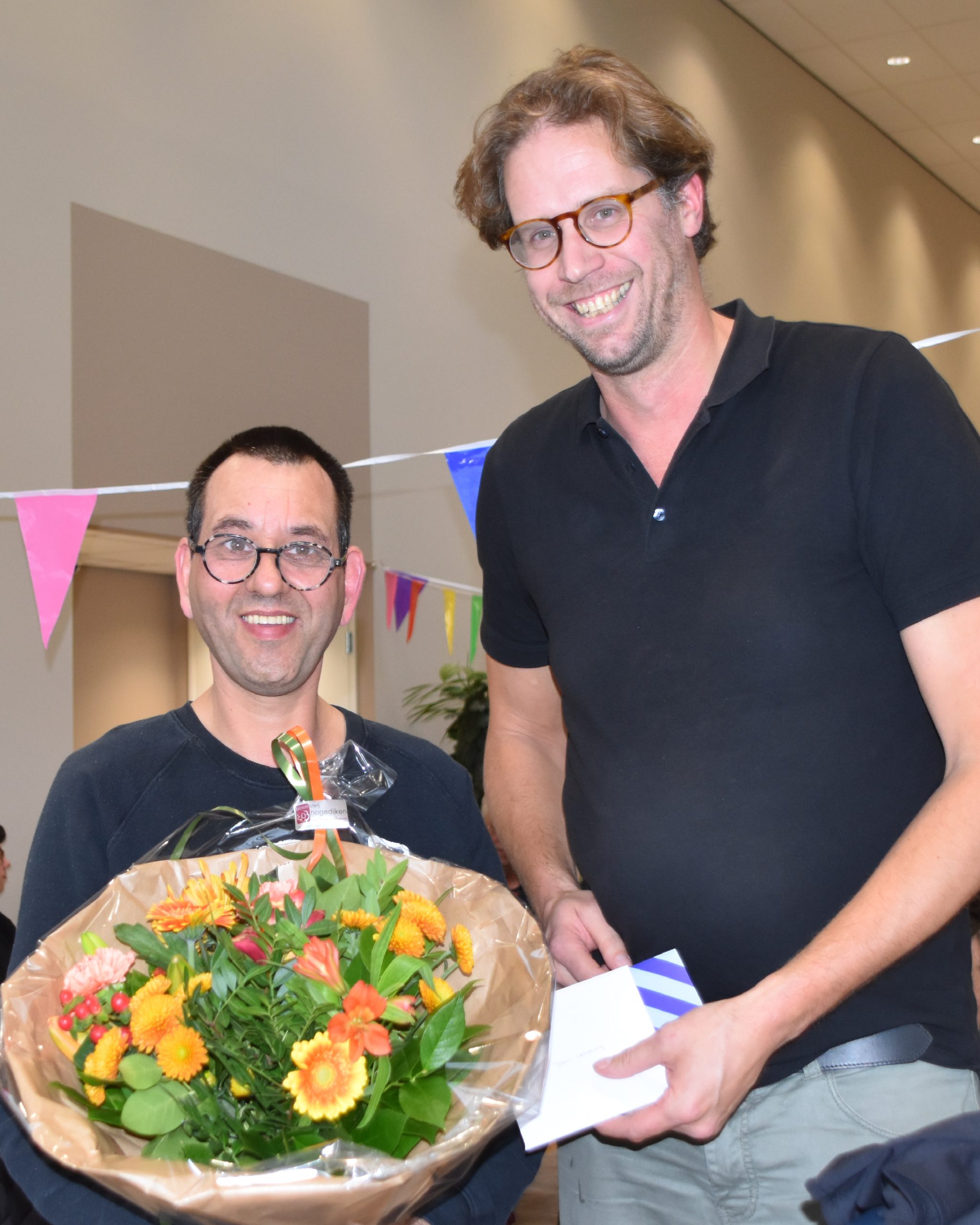 Ook buiten werktijd zit Dirk bepaald niet stil. Met zijn vaste schema met veel sportieve activiteiten en gezonde levensstijl probeert hij in topvorm te blijven. Tijdens de receptie gaf hij zelfs een korte demonstratie van zijn oefeningen, met zichtbaar plezier en applaus van het publiek. Als verrassing kreeg hij van de collega’s een sportshirt cadeau, perfect voor zijn actieve momenten.