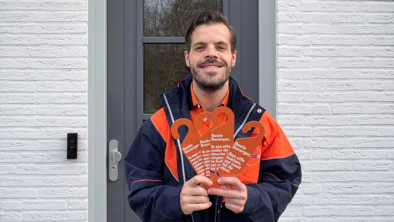Voor als je nét even druk(ken) bent. Waarom belt de bezorger altijd aan als je net even op de wc zit? We snappen je. Daarom binnenkort verkrijgbaar: de PostNL-deurhanger. Hang ’m aan je deur. Dan weet onze bezorger genoeg.