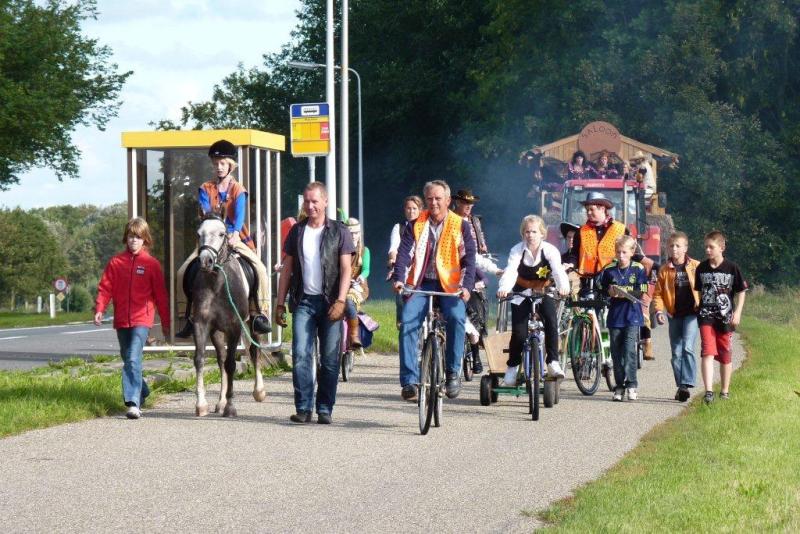 Vrijdagavond (en zaterdagmorgen) was er een optocht van versierde wagens, fietsers en wandelaars. de eerste prijs ging naar de saloon die geweldig mooi op een wagen was gebouwd door een vriendenclub, tweede prijs was voor de indianen en cowboys op de fietsen compleet met wigwam van de Ids Wiersmastrjitte, derde prijs was voor sheriff Mickey compleet met lasso en geweer, en de vierde prijs was voor de cowboy met paard Pietric en Theo van Dijk,
