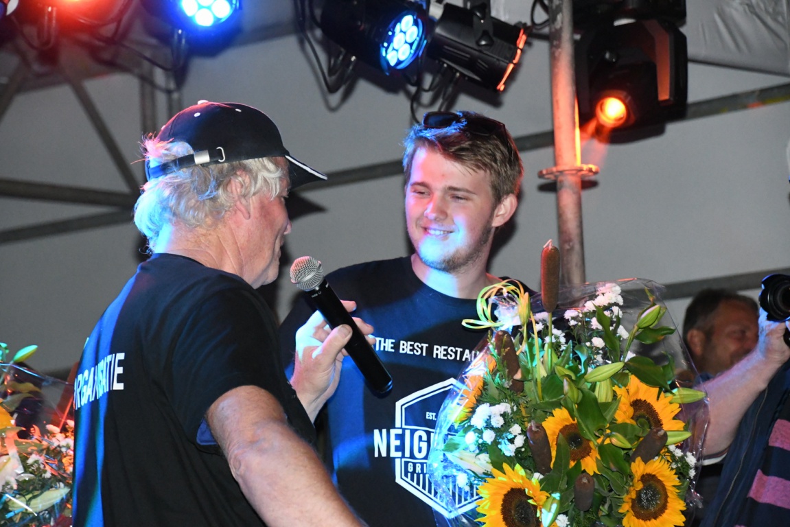 De prijsuitreiking werd gedaan door voorzitter Cor Hellinga. De kinderen van Annie Bosma werden even naar voren geroepen en kregen voor hun moeder ook een prachtig bos bloemen en zij bedankten namens hun moeder iedereen voor de steun. Als derde was geëindigd Durk Postma, die het overdag best wel zwaar heeft gehad, maar met ondersteuning van iedereen is het toch gelukt. Tweede werd Mike Boorsma. De winnares was Dorrie Hilboezen.