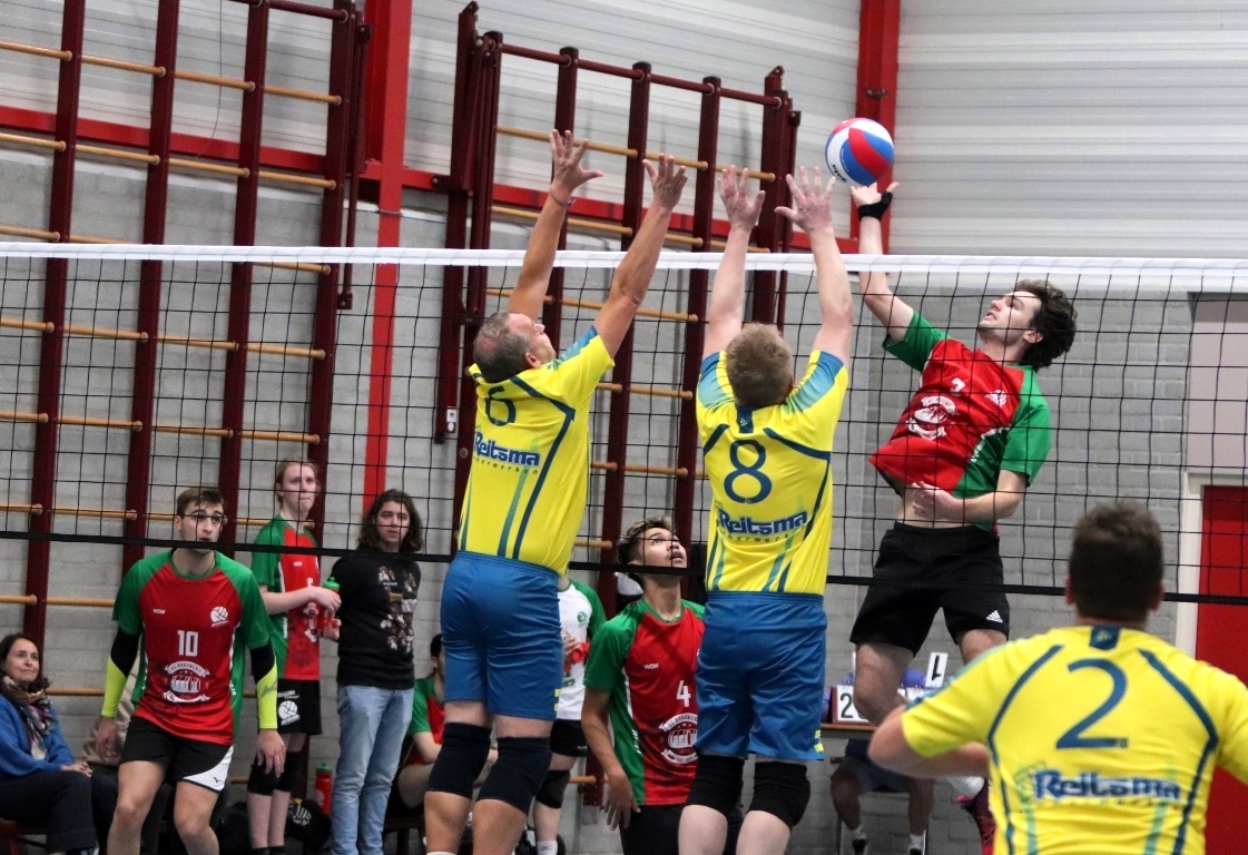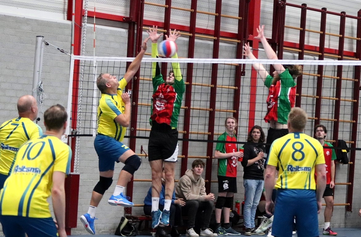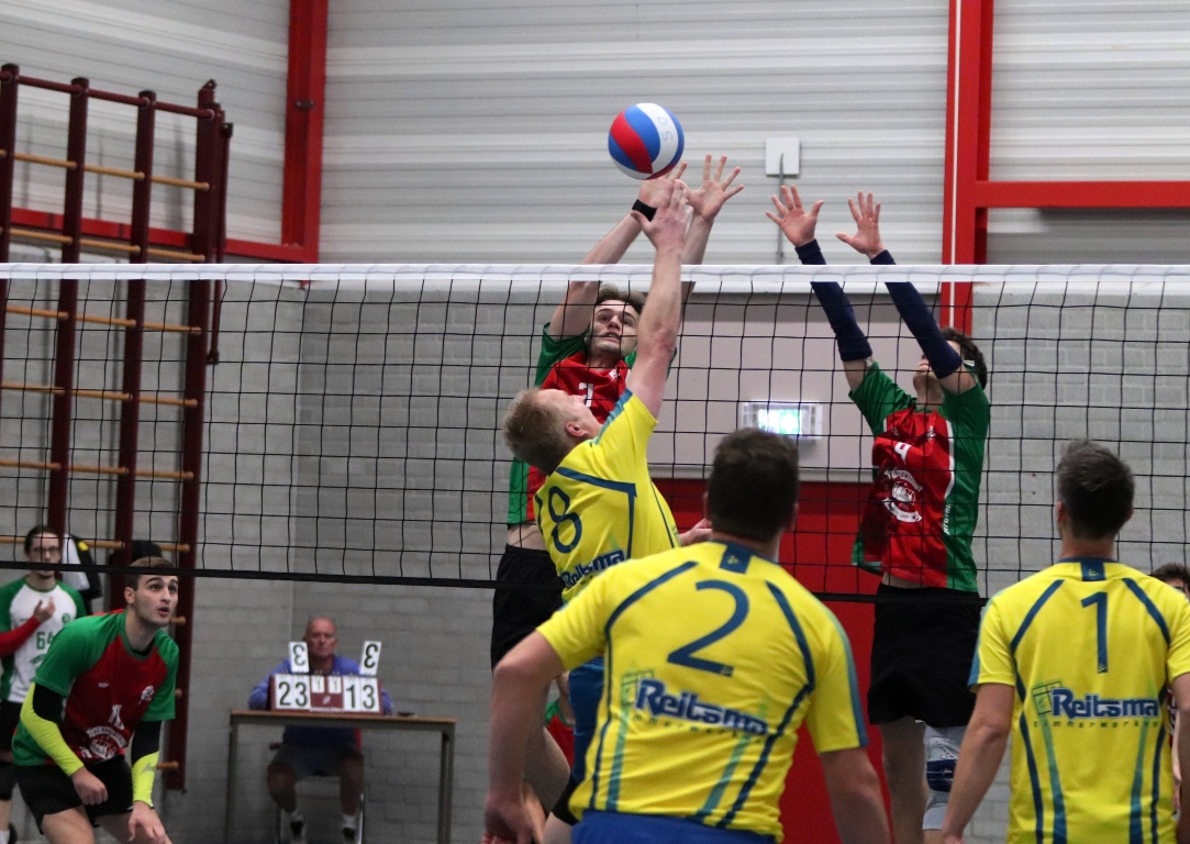 KOLLUMERSWEACH – Het eerste herenteam van DOS heeft zich door een knappe 4-0 (25-22, 25-13, 25-16, 27-25) overwinning op Kroton in de top van de eerste klasse A genesteld. In een leuke wedstrijd lieten de Kollumersweachsters zien dat ze bijgeleerd hebben van de eerste twee uitwedstrijden.