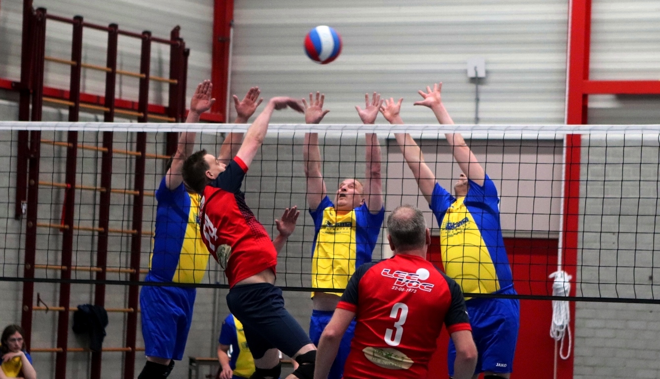 KOLLUMERSWEACH – De heren van DOS hebben in de een-na-laatste thuiswedstrijd van het seizoen geen spaan heel gelaten van nummer acht Leevoc. Na een ietwat moeizame start stoomden de Kollumersweachsters in wisselende opstellingen door naar een 4-0 (25-15, 25-09, 25-13, 25-12) overwinning. Door de maximale winst staat DOS stevig op de derde positie op de ranglijst met eenenvijftig punten uit veertien duels.
