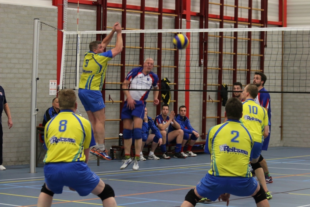 Coach Appie Hietkamp kon over een volledige selectie beschikken en startte daardoor met Peter Wolters op de diagonaal, Wouter de Vries en Cornelis van Slageren op de buiten, Kees Kloosterman en Douwe Kooistra op de mid en Gerrit de Beer op de spelverdeling. Hendrik Postma nam als reserve spelverdeler plaats op de bank. DOS begon sterk aan het duel, er werd sterk geserveerd en aangevallen. Dit leverde in zowel de eerste als tweede set een onoverbrugbare voorsprong op.
