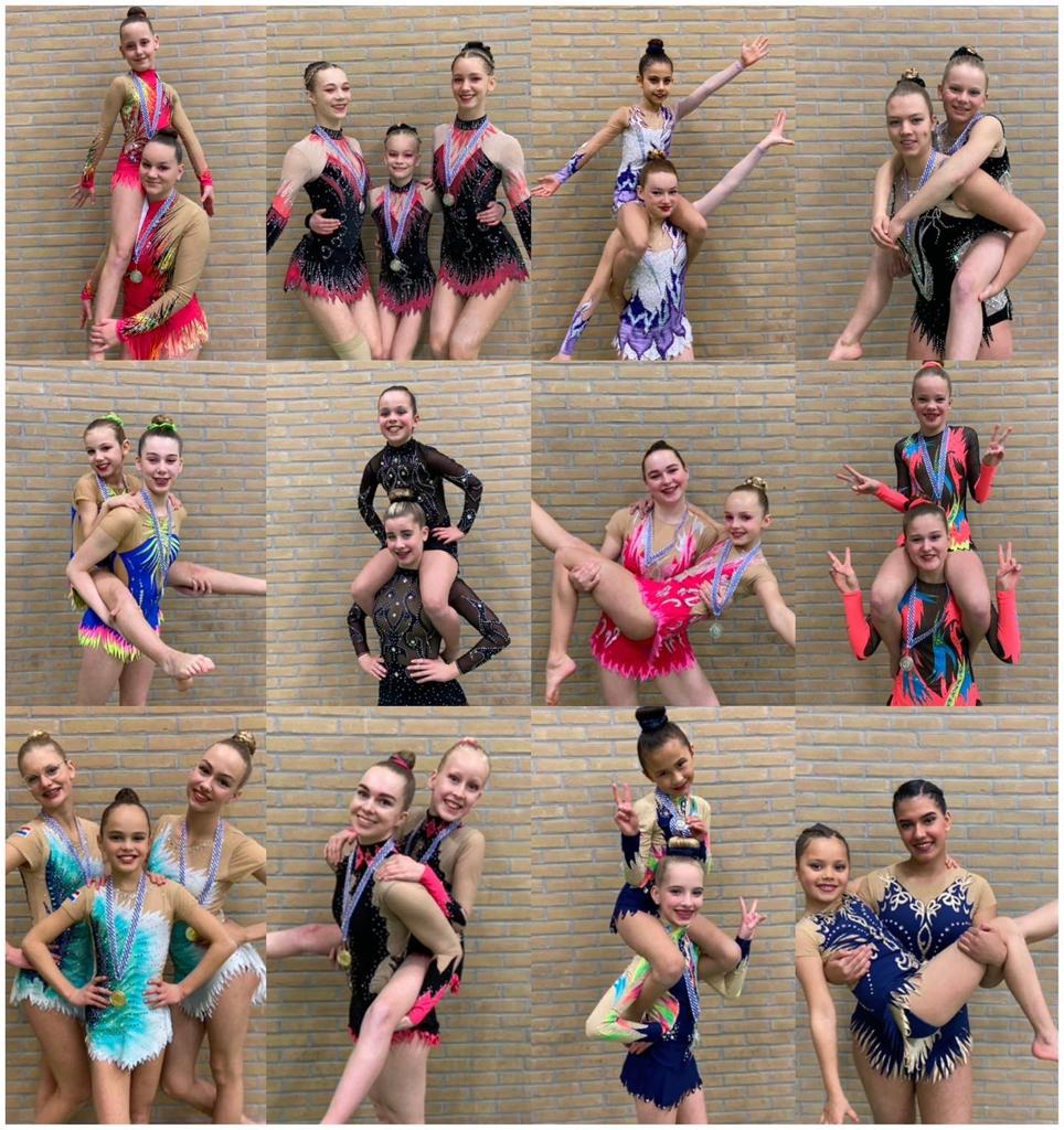 De teams hebben de afgelopen weken hard getraind om de oefening nog netter en strakker uit te voeren. Het harde werken werd beloond met negen medailles en drie Friese kampioenen!