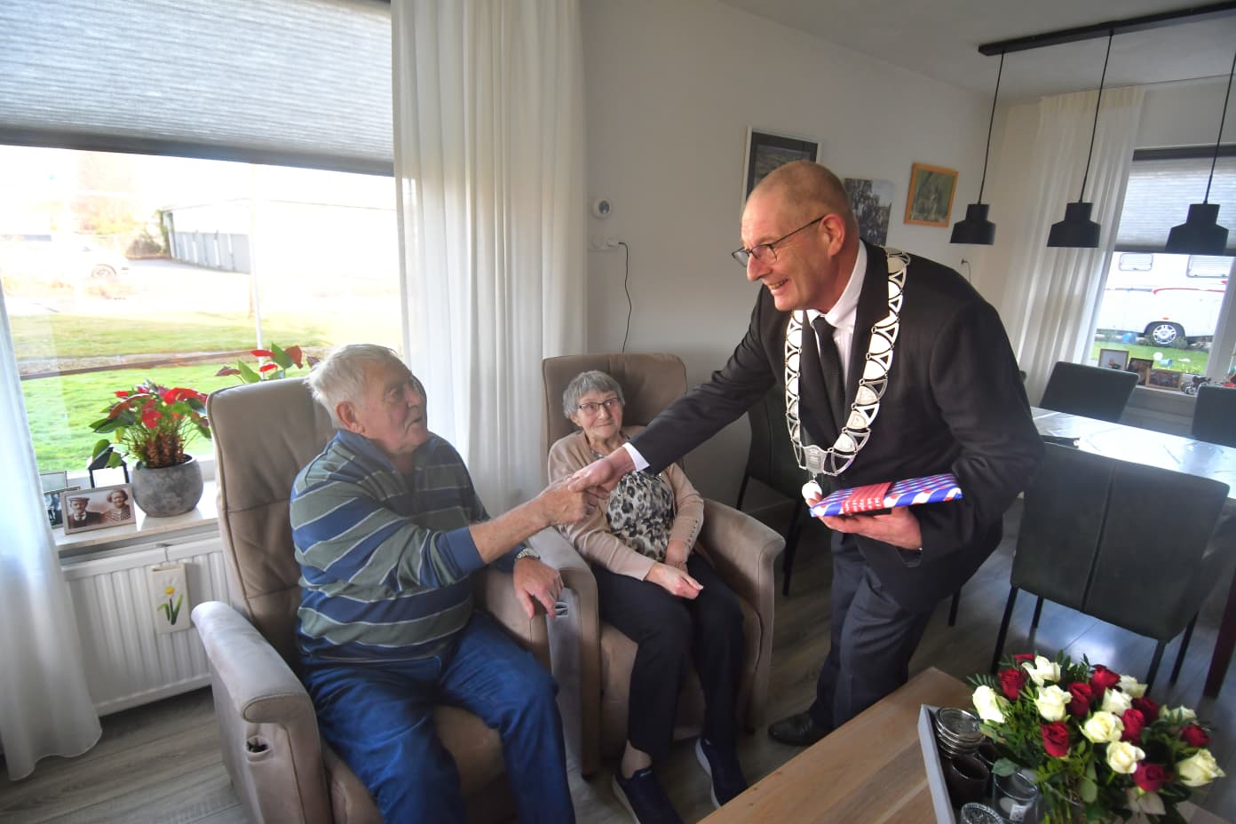 SURHUISTERVEEN – Wiebe van der Wal en Hinke van der Wal-Hansma hebben vandaag hun 60-jarig huwelijk gevierd. Wethouder Engbert van Esch kwam woensdagmiddag langs om het echtpaar persoonlijk te feliciteren namens de gemeente.