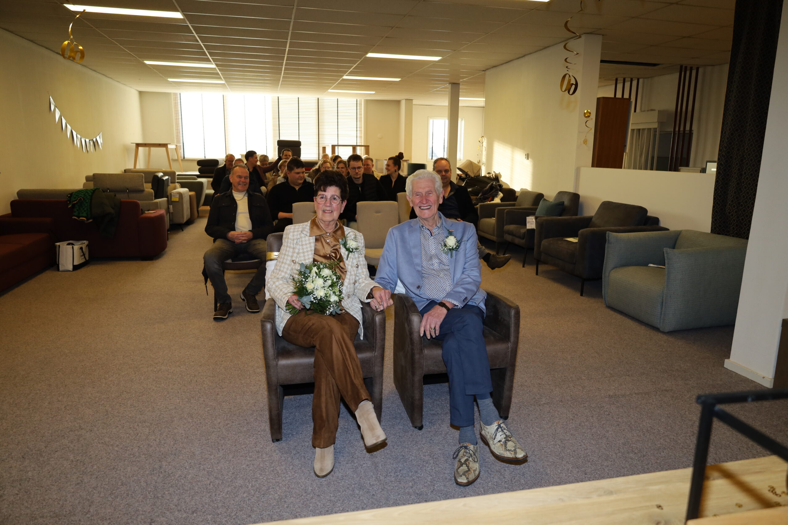 Later op de middag verrasten de kinderen hun ouders. Ritske en Annie werden meegenomen naar het pand waar zij zestig jaar geleden elkaar het jawoord gaven. In de bovenzaal werd de huwelijksvoltrekking nagespeeld, met dochter Petra in de rol van BABS. Het paar genoot met volle teugen.