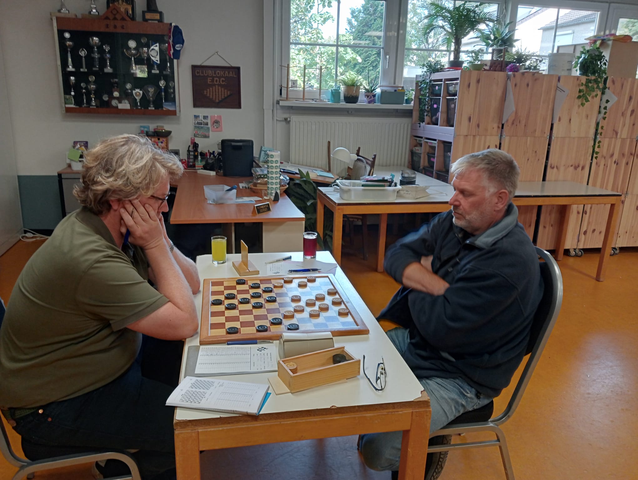 Henk Elgersma kon lang bij blijven, maar liet zich toch verrassen door een klein lokzetje. Hiermee kwam Elgersma een schijf achter en zag later ook de partij verloren gaan. Dirk Albert Zijlstra kwam goed uit de opening, maar kwam in het middenspel minder te staan. Om een puntje veilig te stellen plaatste hij, bleek achteraf, een onnodig offer. Ook deze partij ging verloren.