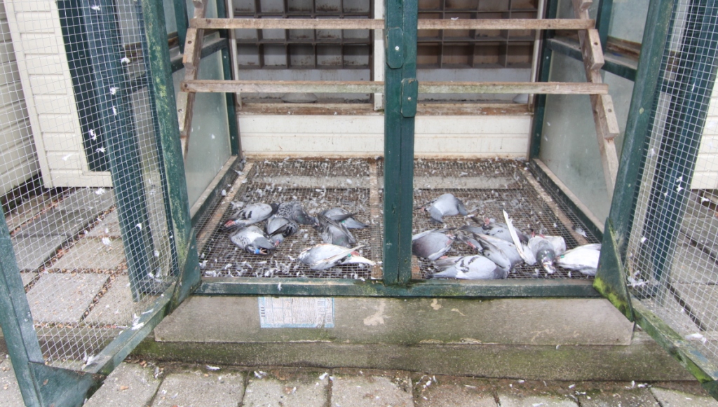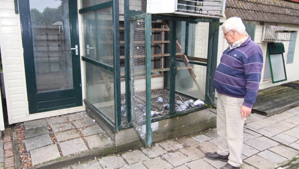 Vrijdagmorgen liepen de tranen over mijn wangen zei Dhr. H. Hiemstra uit Twijzelerheide s’morgens gaat hij het eerst naar de duiven, toen hij bij zijn duivenhok aan kwam en tot de ontdekking