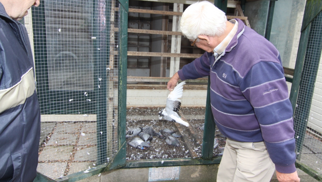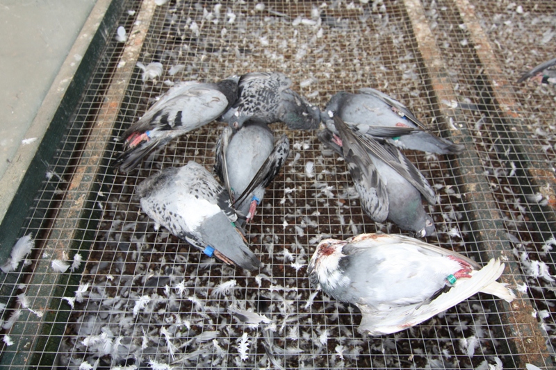 Een verslagen Hiemstra bij zijn dode duiven