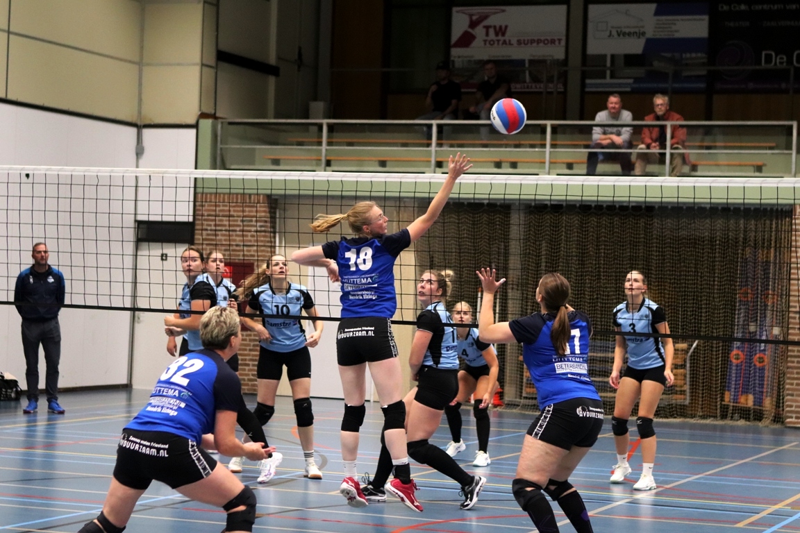 In de derde set werd er gewisseld: Liesbeth maakte plaats voor de nieuwe diagonaal Femmie. Even wennen, maar al snel had het team het ritme weer te pakken. Femmie verdedigde fel en haalde meerdere ballen van de grond. Het teamgevoel was sterk en dat vertaalde zich in punten. Greetje zette met een sterke opslagreeks de voorsprong verder uit. Waar de tweede set nog nagelbijtend spannend was, bleef Triumphera deze keer stevig aan de leiding. Het werd 25-19.
