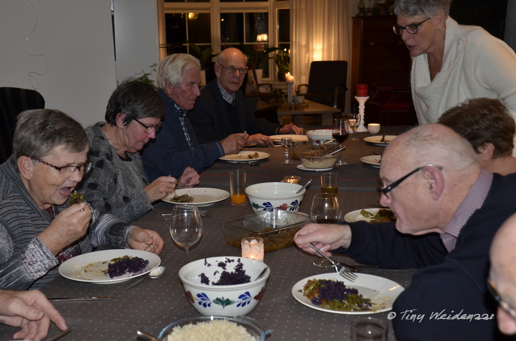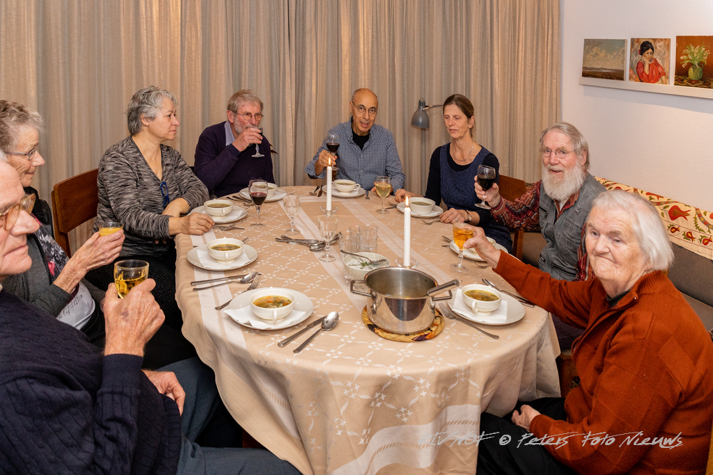 De uitnodigingen zijn de deur uit, als u dit leest en zij hopen dat ze veel gasten mogen ontmoeten op 19 november en dat ze samen kunnen terug zien op mooi momenten. En dan is het zover. De gasten zijn uitgenodigd. Voor hen als gastvrouwen heel spannend of er mensen zijn die het idee leuk vinden. En wat blijkt, er komen 34 gasten bij hen aanschuiven. Wat geweldig.