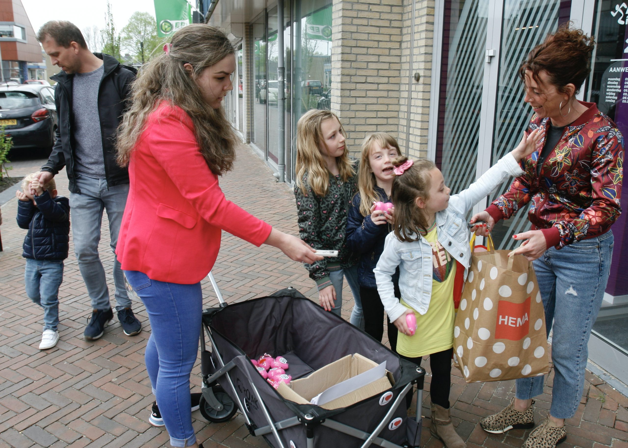 Als warme broodjes vinden de in roze hartjes verpakte bruisballen – die een extra dimensie aan het bad moment zullen geven – aftrek, waarmee Tuorke en Jurre vele bezoekers van Surhuisterveen weer blij maken. Veel winkelend publiek zoekt na het shoppen tijdens het heerlijke voorjaarsweer nog even een terrasje op voor een bakje koffie en – voor de extra dimensie – wellicht een gebakje met slagroom.