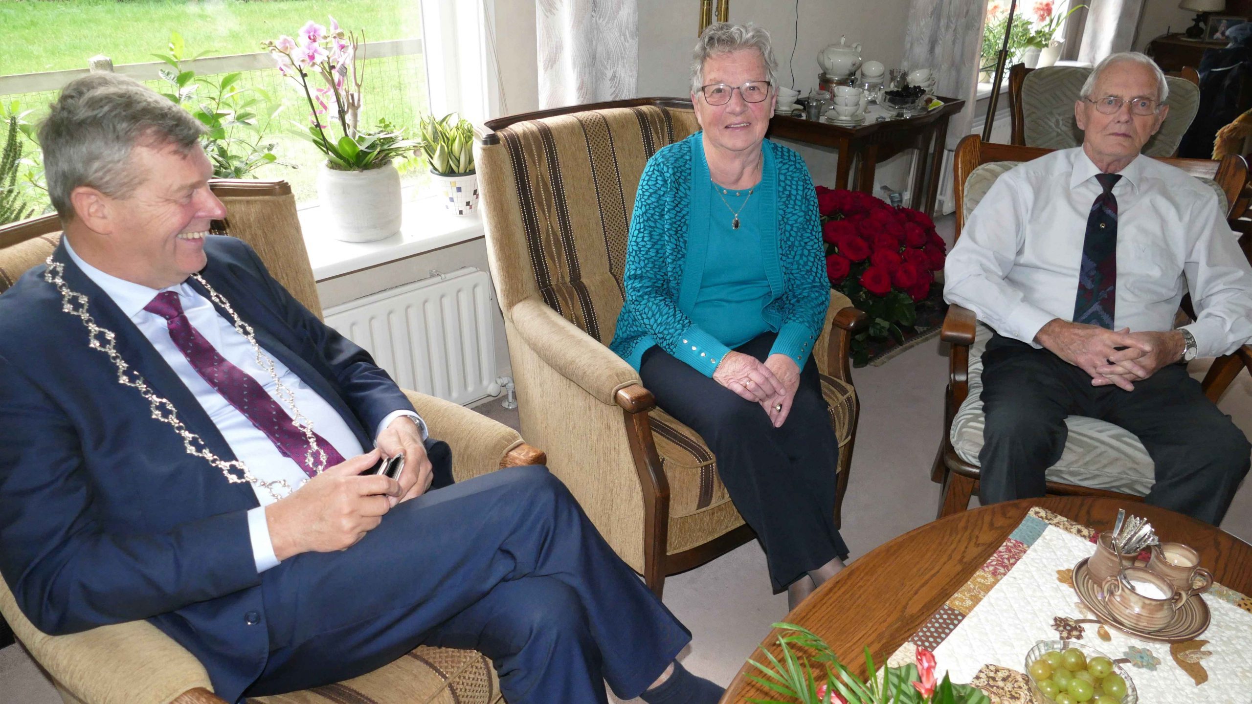 Op maandag 26 oktober kwam burgemeester Klaas Agricola van de gemeente Dantumadiel het briljanten bruidspaar feliciteren met dit bijzondere jubileum.