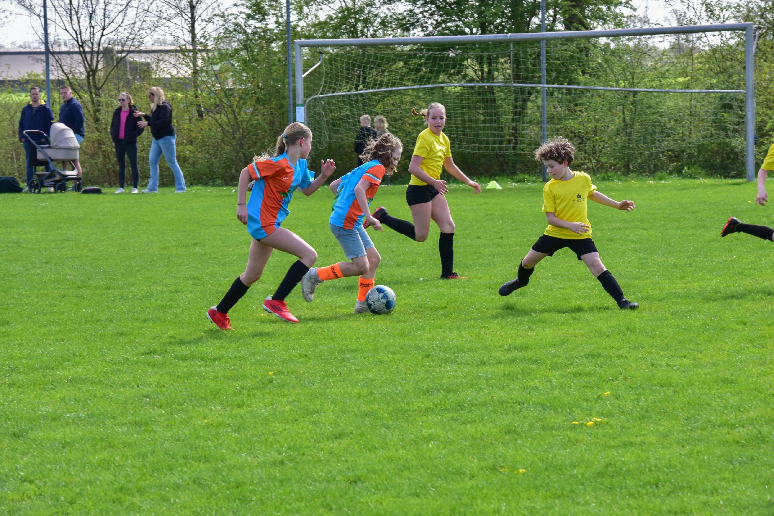 Bij de meisjes werden 2 poule schema gevoetbald, daar kwamen twee halve finales uit gevolgd door de finale tussen De Wrâldwizer Easternijtsjerk en De Eker uit Eanjum. De Eker won de finale met beslissing door penalty’s.