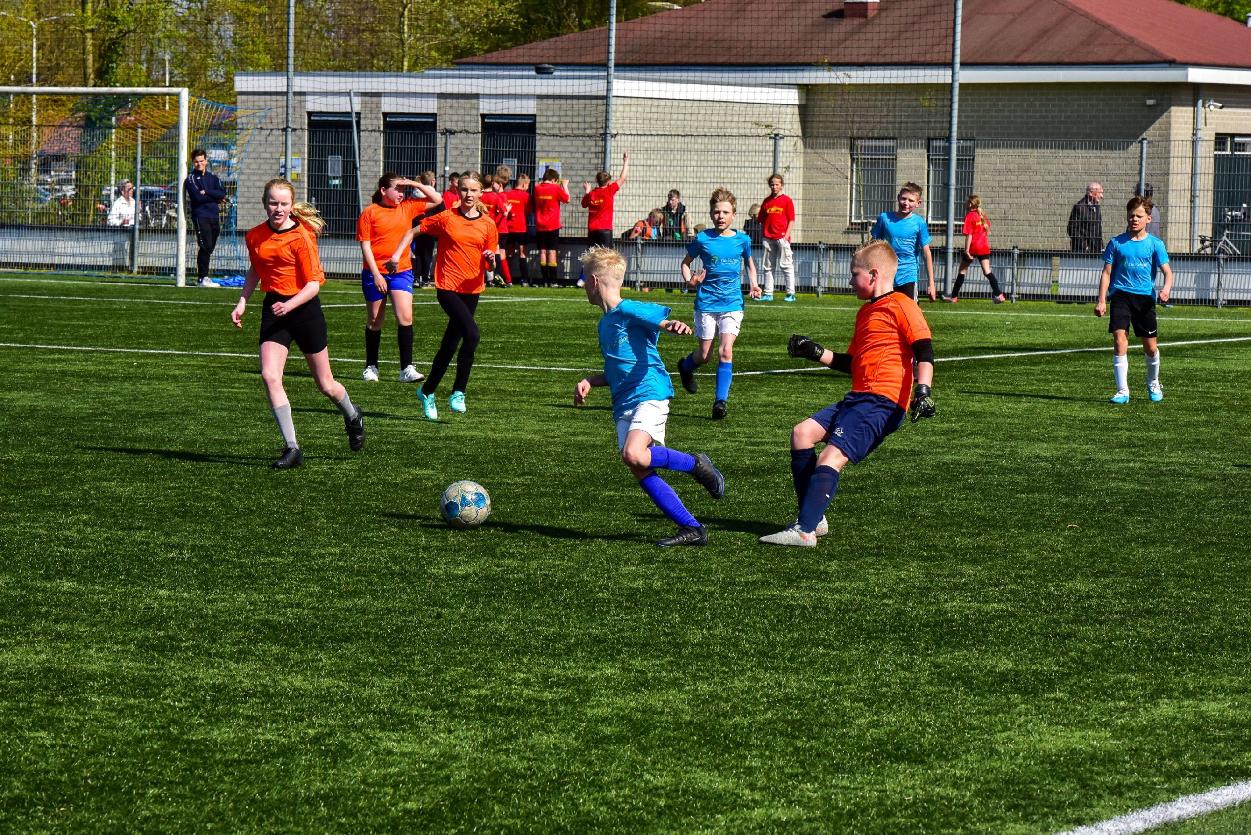 DOKKUM – woensdag 10 april werd het jaarlijkse Schoolvoetbaltoernooi voor de leerlingen uit de groepen 6, 7 en 8 uit de gemeente voorheen Gemeente Dongeradeel gehouden. Maar liefst 37 achttallen op de voetbalvelden van Be Quick Dokkum. Met veel enthousiasme, veel publiek en het zonnetje aan de hemel werd er gevoetbald door de jeugd.