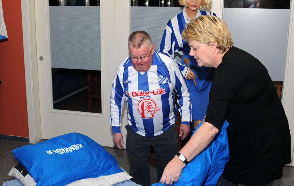 Naast het showen van de kleding door een paspop was er een trouwe supporter van de club die het dekbed wilde uitproberen. Dit beviel hem echter zo goed, dat hij bijna twee uurtjes heerlijk ontspannen in dromenland heeft doorgebracht. De fanshop is tot dinsdag 3 december in de kantine aanwezig en zelfs Sinterklaas haalt zijn cadeaus natuurlijk bij de fanshop.