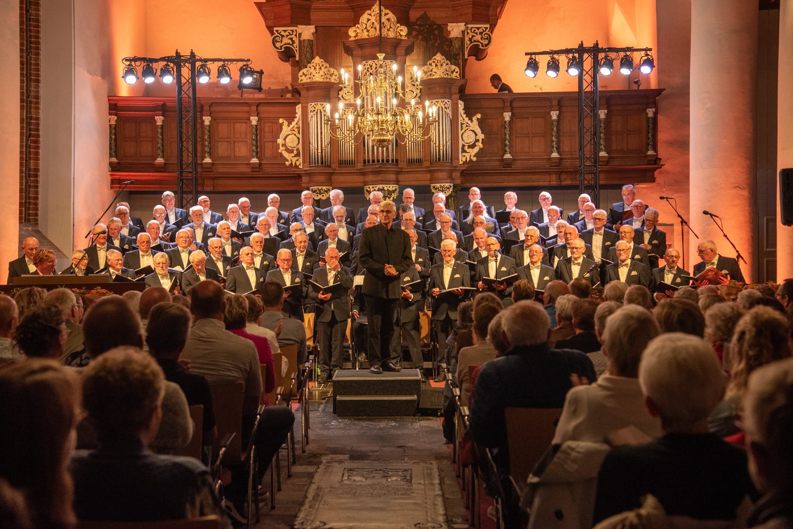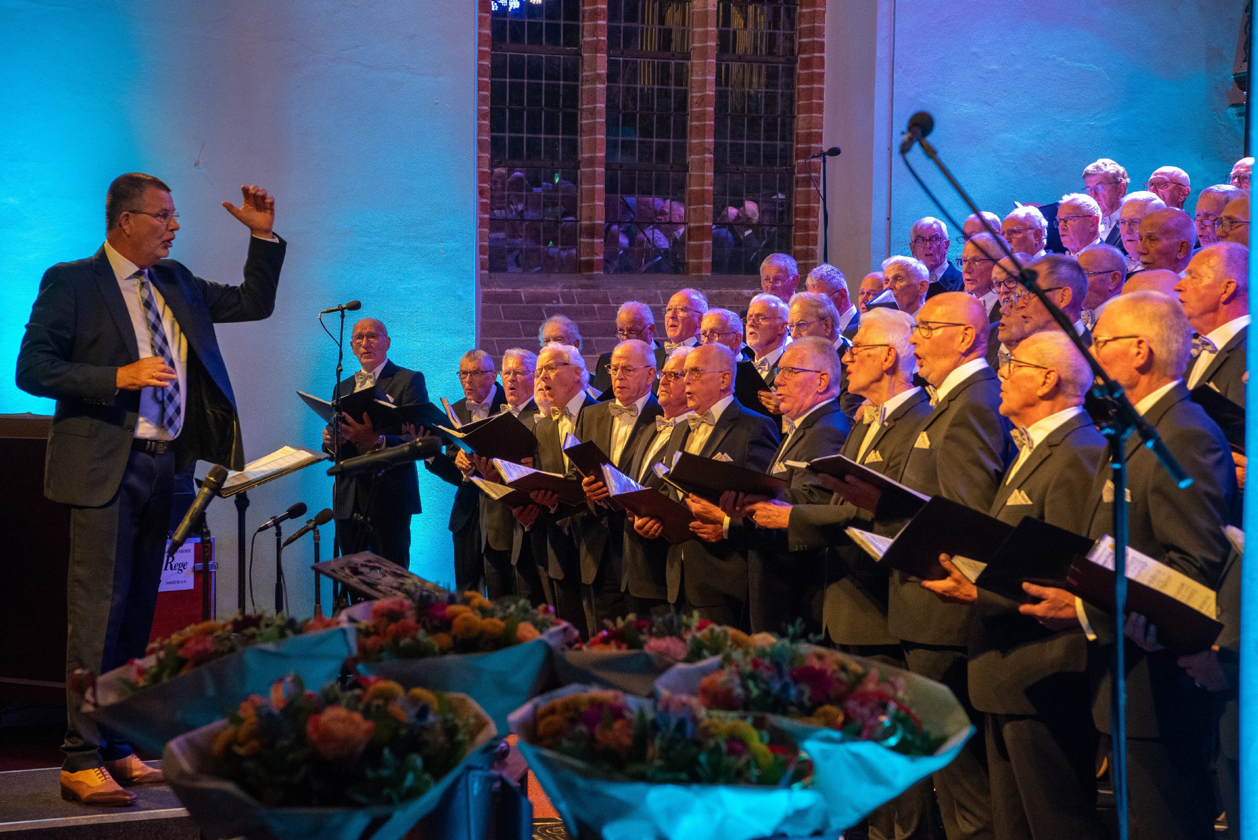 DOKKUM – Zaterdagavond 20 september was de prachtige kerkzaal van de Grote Kerk in Dokkum tot de laatste stoel bezet. Wat een prachtig cadeau voor het koor dat er zoveel koorliefhebbers aanwezig waren bij het jubileumconcert. Namens de gemeente Noardeast- Fryslân was wethouder Hanneke Jouta aanwezig en Henk Visser namens de zangers bond KCZB.
