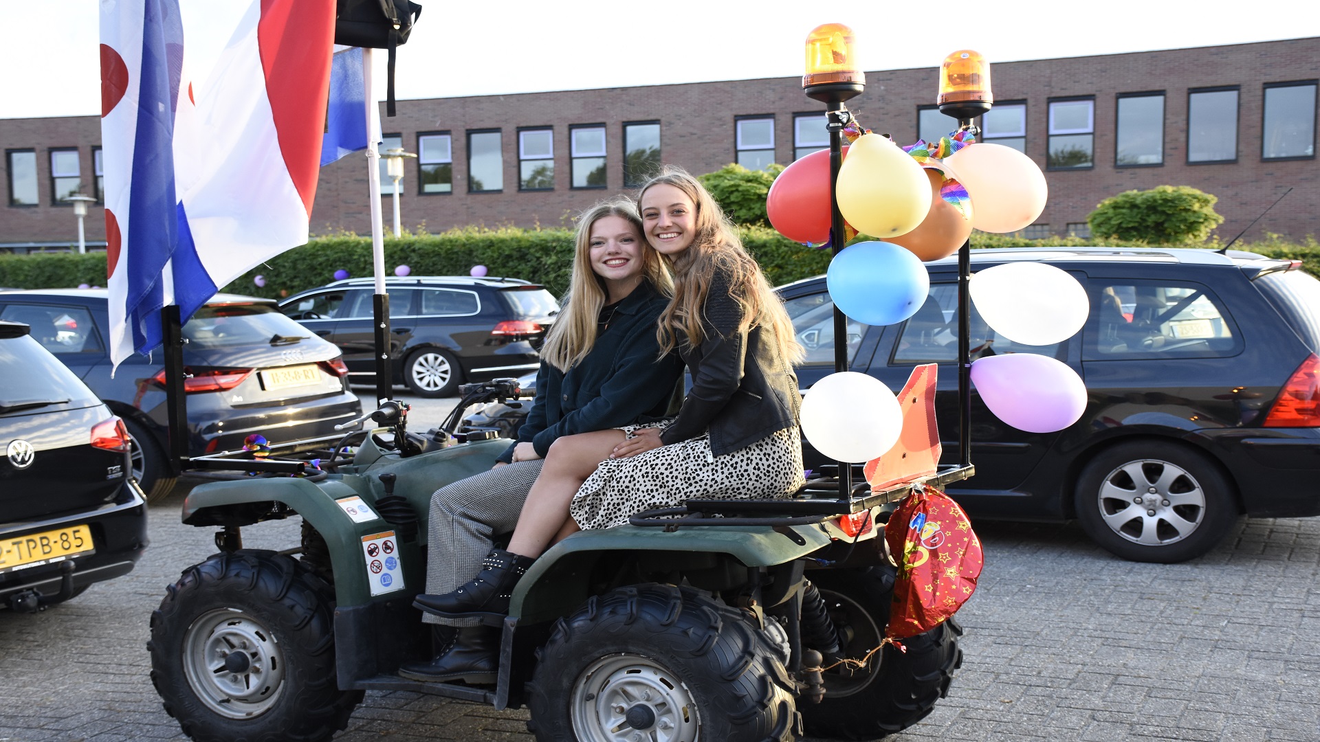 Feestelijke drive-thru diploma-uitreiking voor leerlingen havo/vwo