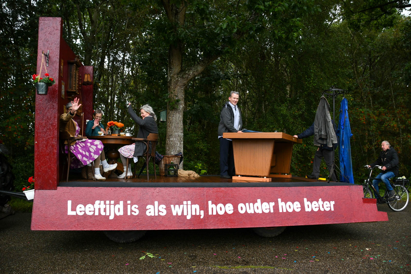 Donderdagochtend vroeg verzamelden de wagens zich al op het industrieterrein, klaar voor een dag vol feest. De deelnemers hebben weken, en soms zelfs maanden, gewerkt aan hun versierde wagens, fietsen en kleding, en dat was goed te zien. Om 8.15 uur vertrok de stoet, die zich in rap tempo door de straten bewoog. Door de regen moesten de deelnemers iets sneller rijden dan gepland, maar dat deed niets af aan de feestvreugde.