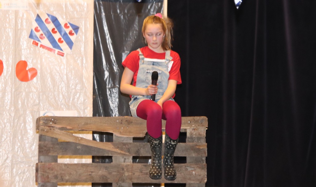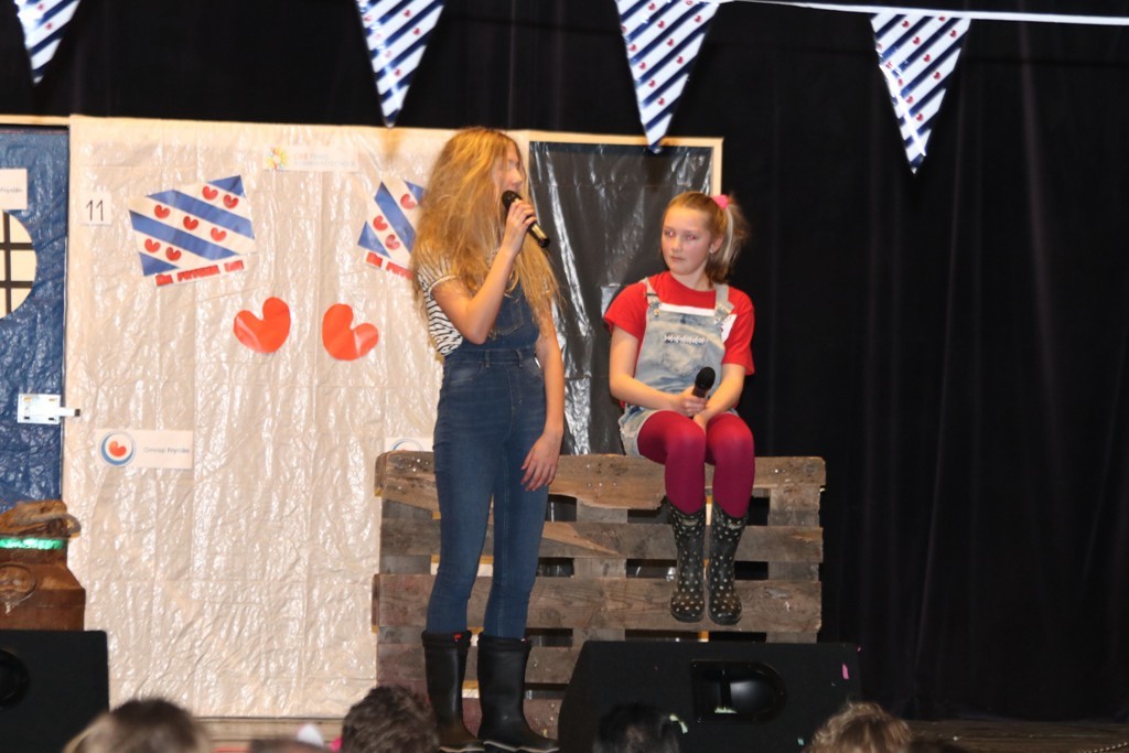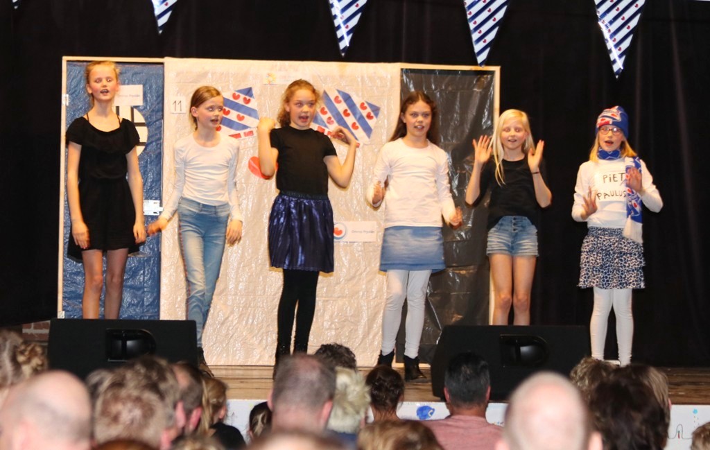 Vervolgens was groep 7/8 aan de beurt met de act Fryslân hat talint, met als voorbeeld de act Zaai (DUUUSSS!), maar dit was zeker niet saai!