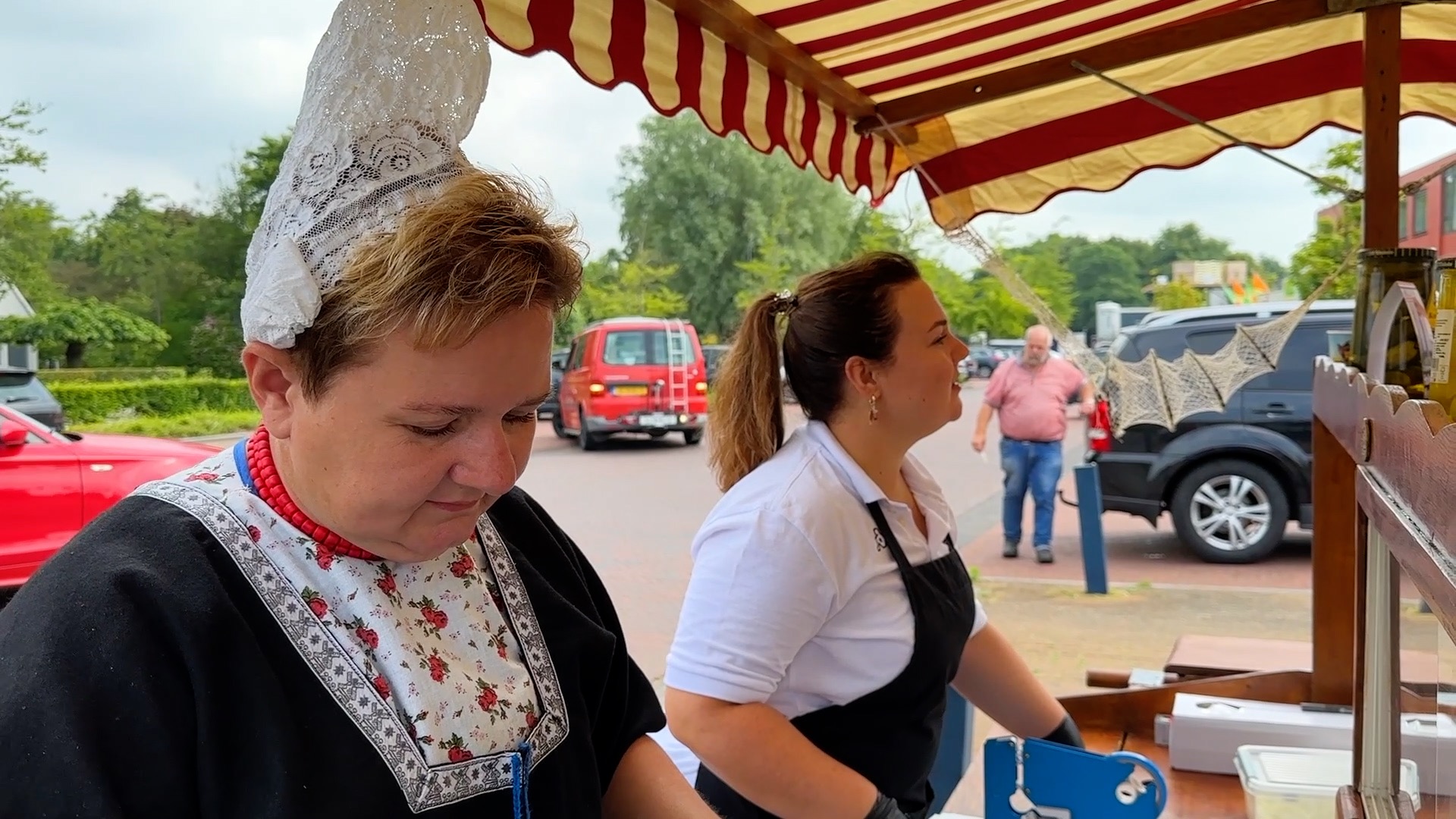 Marian Hoogsteen werkt al 18 jaar bij de viskraam en vind dit toch nog altijd een bijzondere dag: “It bliuwt fantastysk, we ha it smoar drok en we hoege ús dan ek net te ferfelen.”, aldus Marian