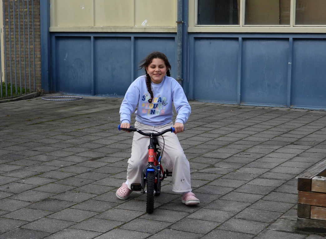 Na een halfuurtje met interessante weetjes en basisinformatie over de verkeersregels, konden de mannen, vrouwen en kinderen op het terrein van de nood opvang het geleerde in de praktijk brengen. Dit gebeurde op fietsen die voor deze gelegenheid ter beschikking waren gesteld door Luinstra’s Fietsen in Kollum.