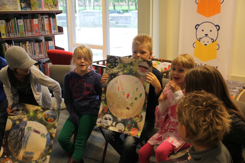 Naast deze bijzondere activiteit die zich op sommige basisscholen in Noordoost Fryslân afspeelt, organiseert de bibliotheek voor de groepen 4 van de basisscholen een groepsbezoek rond het thema ‘Hallo wereld’, een bezoek dat altijd enthousiast en druk bezocht wordt.