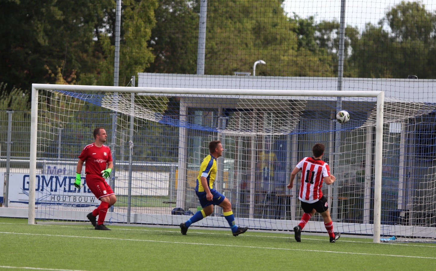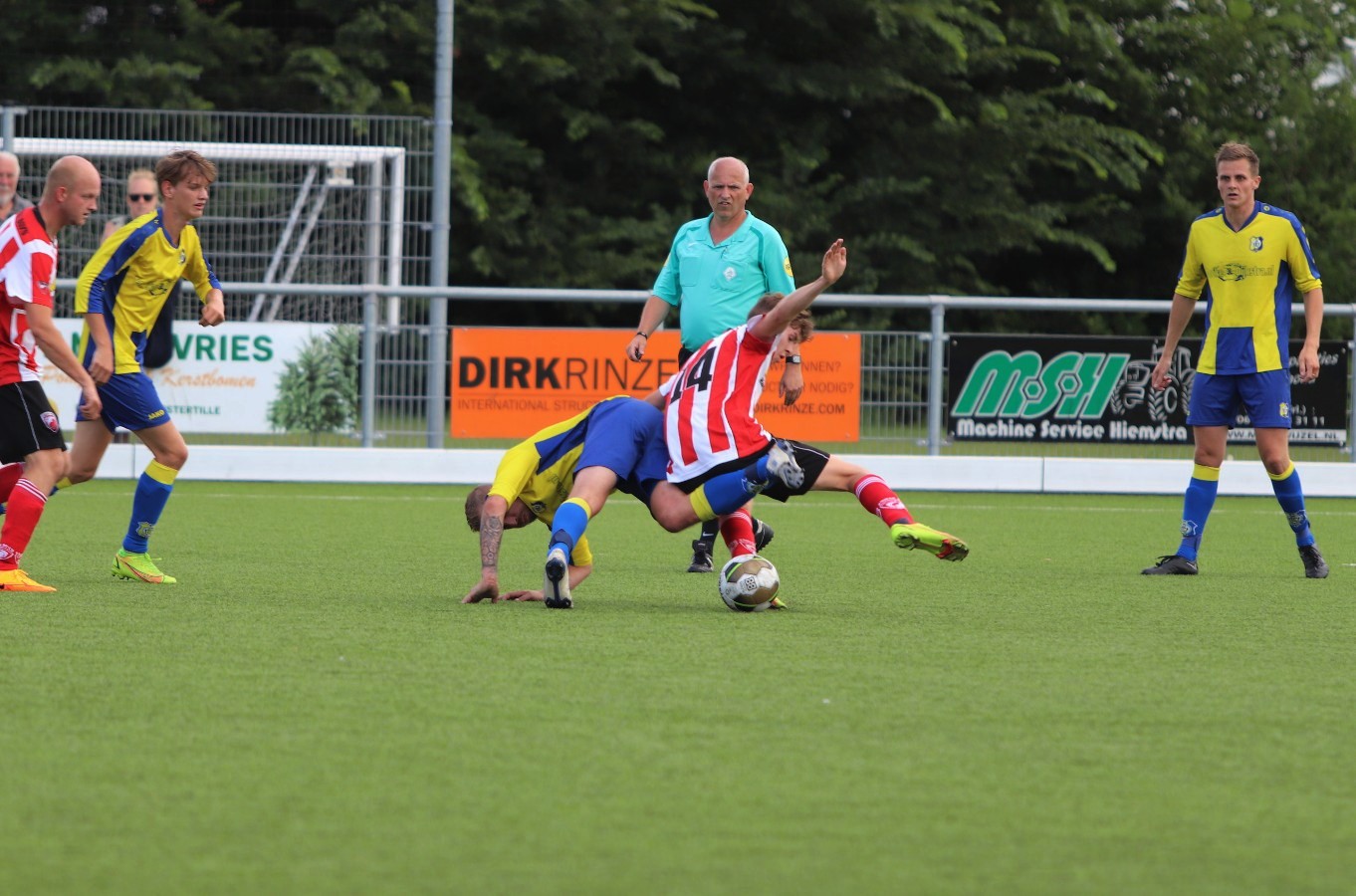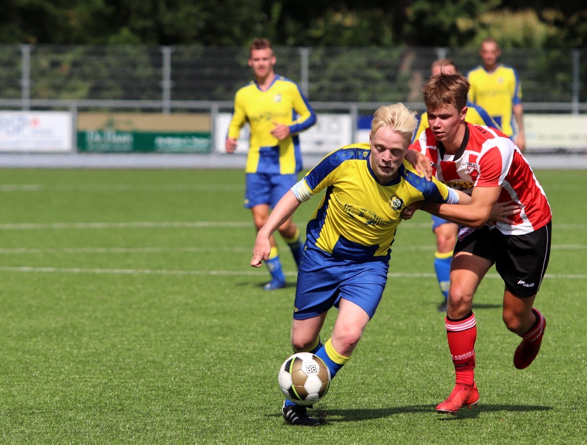 Onder warme omstandigheden gebeurde er in het 1e deel van de 1e helft niet veel. Er werd door beide teams op balbezit gespeeld en als de teams op de vijandelijke helft kwamen, dan was er regelmatig balverlies of de verdediging die tijdig ingreep. Andries van der Zwaag, Oane van der Heide en Sil Klaver zagen de diepe ballen in deze fase niet aan komen.