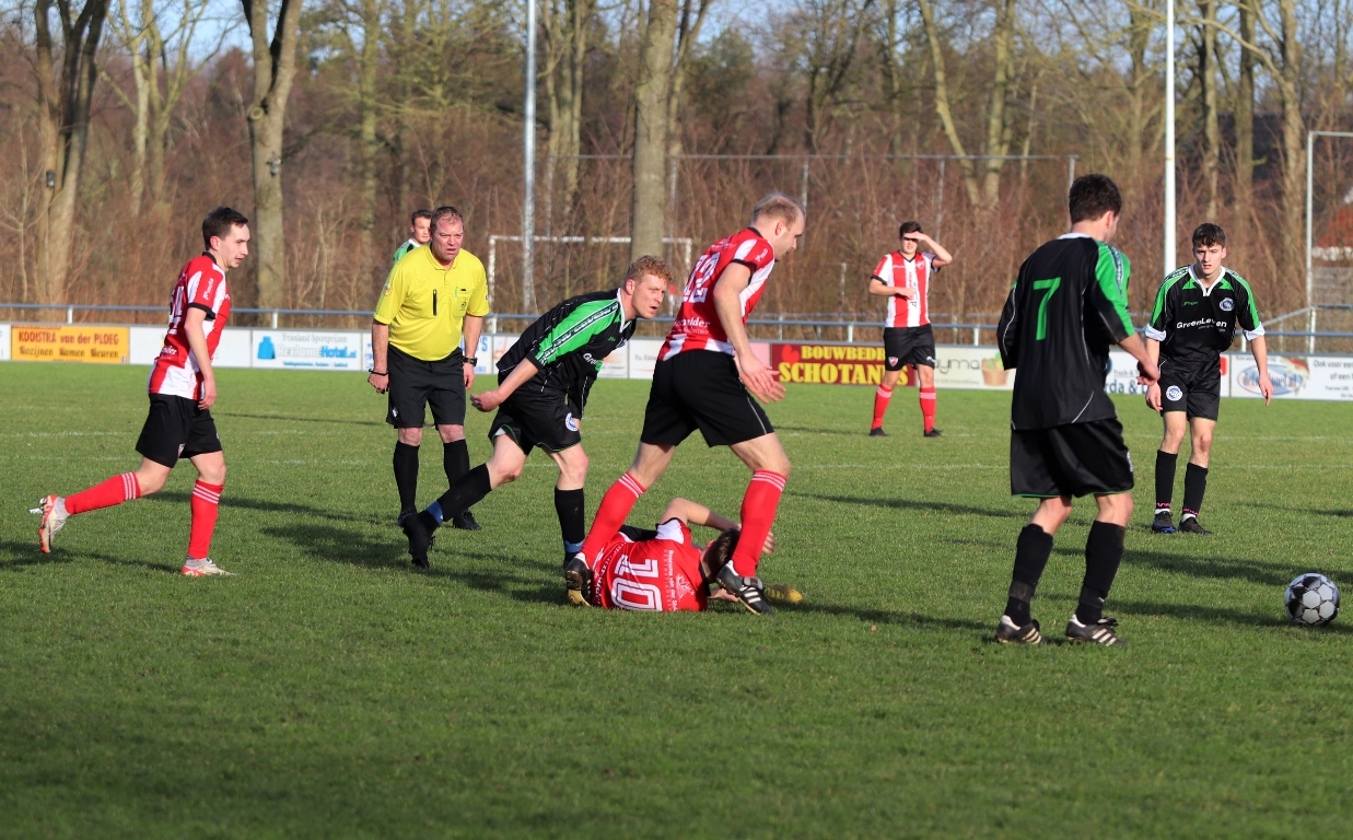 Pupil van de week Jochum van der Zaag liet onder heerlijke weersomstandigheden (zonnetje, geen wind) het net bollen en daarna kon de wedstrijd beginnen onder leiding van scheidsrechter Durik uit Assen. Op een hobbelig veld bleek het lastig voetballen en daardoor leden beide teams regelmatig balverlies.