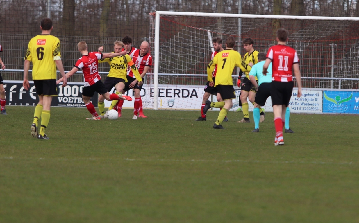 KOLLUMERSWEACH – Friese Boys pakte vorige week tegen concurrent VIOD uit Driezum in de slotfase een gelijkspel en staat op een 9e plaats met 23 punten en maakte de laatste drie wedstrijden 7 punten grote stappen op weg naar handhaving. Friese Boys had te maken met enkele blessures en trainer van Ayelt van Zuiden moest improviseren. Dirk Jan Heidstra en Sytze Wiersma konden op een basisplaats rekenen. ONT 3 wedstrijden op rij niet gewonnen, liep vorige week nog meer averij op door een nipt verlies in de blessuretijd tegen concurrent Zwaagwesteinde en heeft baat bij winst in de titelstrijd.