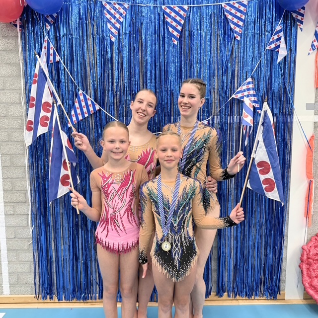 Het jeugdduo supplement 4, Wente Talsma en Isabella de Jong, liet een nette oefening zien en eindigde als vijfde. In supplement 2 bij de junior trio’s lieten Yinthe Veenma, Myrthe Buwalda en Marinthe Mullender een sierlijke oefening zien, waarmee zij de tweede plaats behaalden.