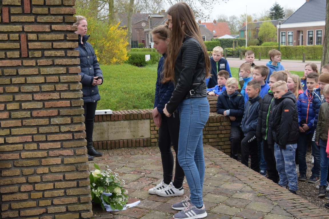 De leerlingen van groep 8 vertelden de verhalen die ze achterhaald hadden, lagen bloemen en spraken de gedichten uit. Daarna lieten zij de leerlingen van groep 7 weten dat zij volgend schooljaar de herdenking mogen leiden, de verhalen mogen onderzoeken en vertellen…want: Vrijheid geef je door!