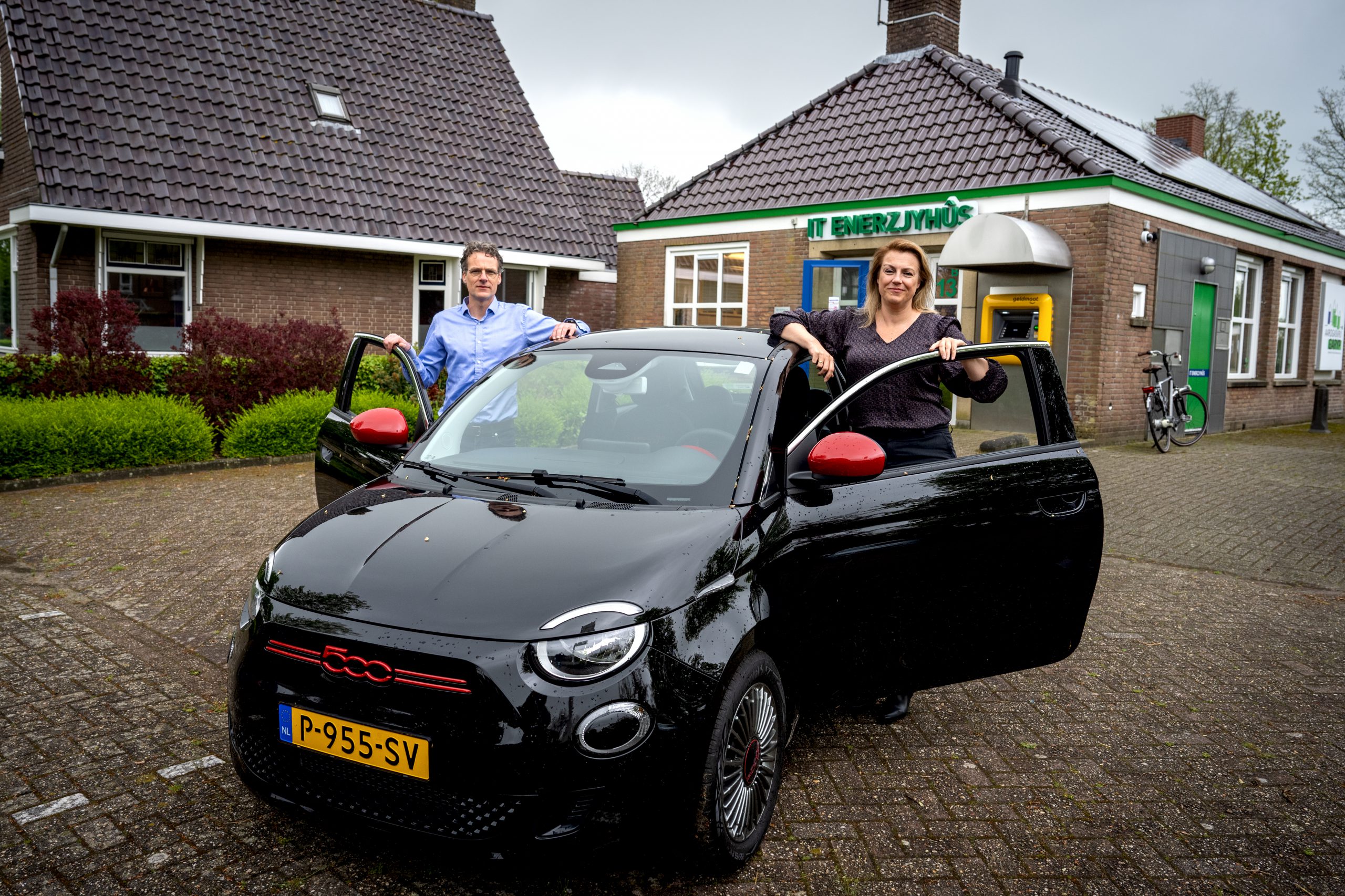 GARYP – Garyp heeft vandaag een elektrische deelauto. Jacob Eelkema, voorzitter van Enerzjy Koöperaasje Garyp, stapte samen wethouder Berber van Zandbergen in de auto voor een eerste rit. Enerzjy Koöperaasje Garyp heeft het initiatief genomen om de elektrische deelauto (onderdeel van Fossylfrij Fryslân) naar Garyp te halen. Een plek bij de bestaande laadpaal bij het dorpshuis, gefaciliteerd door gemeente Tytsjerksteradiel, is gereserveerd voor de deelauto.