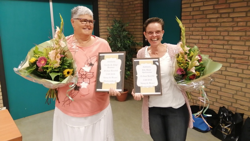 Respectievelijk 30 en 25 jaar hebben Gerda de Jong-Beumer en Elly Blom-Spriensma gezongen in het koor: ‘Sjong de Heare’ uit Oosternijkerk.