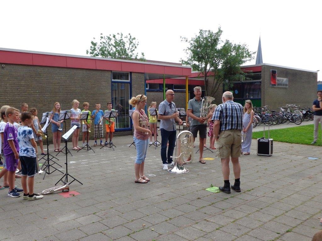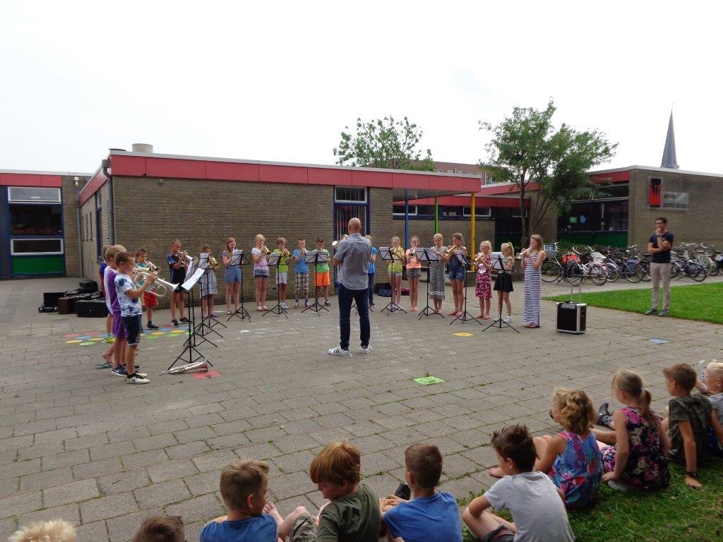 Donderdagmiddag 22 juni een heus openluchtconcert is het muziekproject op de Koningin Julianaschool afgesloten. Het was een gezamenlijk project van brassband Wilhelmina, muziekschool de Wâldsang en de Koningin Julianaschool.