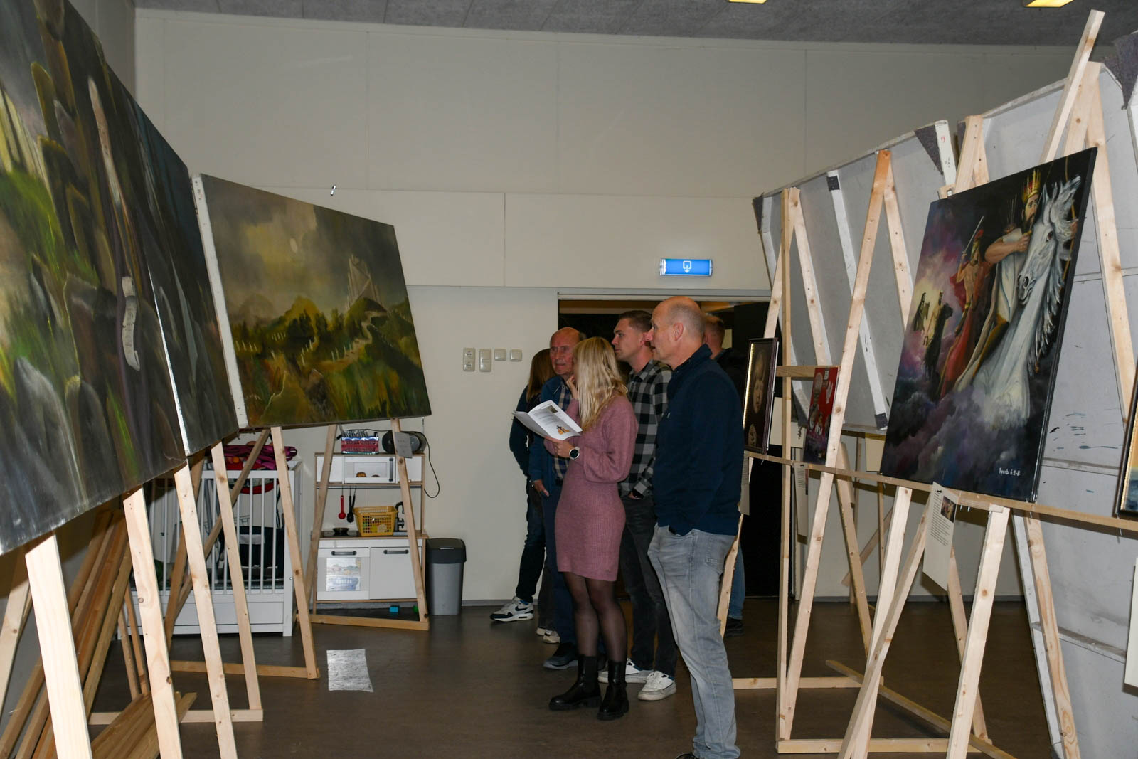 KOLLUMERSWEACH – In het afgelopen weekend was er een expositie met schilderijen van dhr. Rienk Douma te zien in het gebouw “De Boei” in Kollumersweach. De expositie is geopend door Rienk Douma en zijn zoon Sietse. Op de schilderijen waren Bijbelse voorstellingen afgebeeld. 25 daarvan hadden een afmeting van 2.40 x 1.20. ‘Immens groot en indrukwekkend’ zo was de reactie van de vele bezoekers.