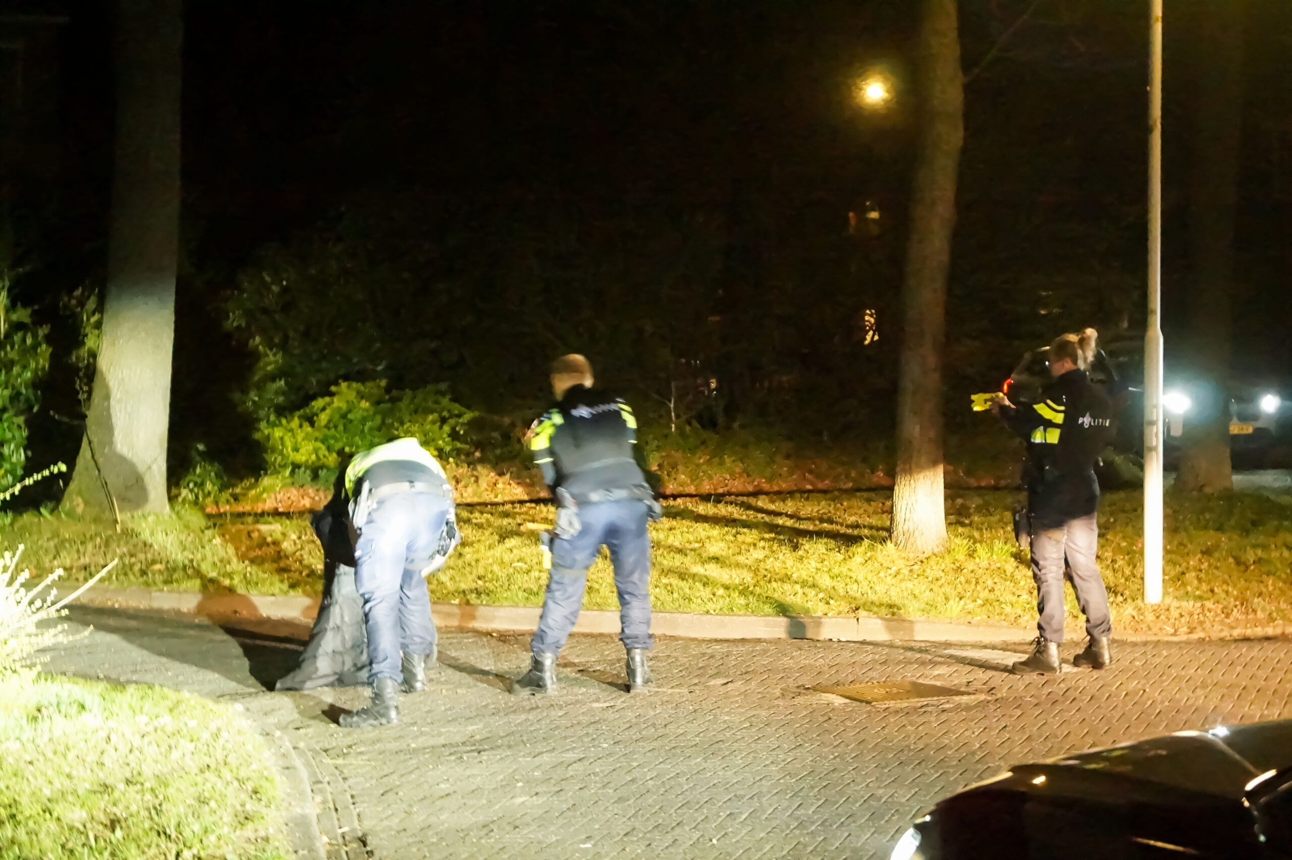 Bij de Poiesz Supermarkt aan de Rijksstraatweg werd een auto doorzocht. Agenten zochten naar een (vuur)wapen, maar vonden niets. De omgeving van de woning werd afgezet. Met een hond is gezocht naar sporen en mogelijke wapens.