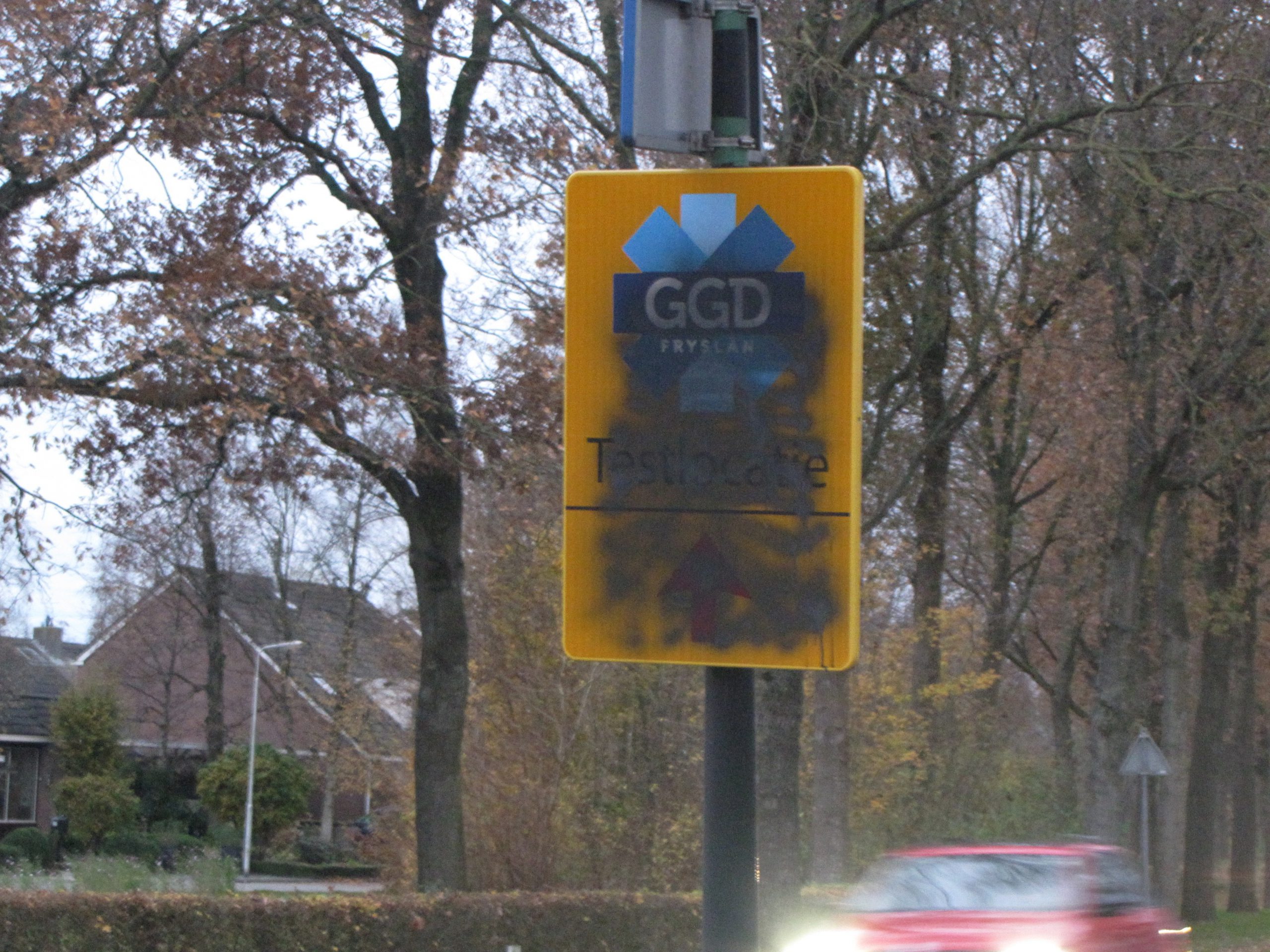 KOLLUM – In Kollum zijn diverse GGD borden beklad met graffiti. Wie hier voor verantwoordelijk zijn is niet bekend. Enkele borden zijn ook verdwenen.
