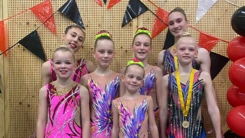 Rachelle, Femke en Lize lieten een strakke oefening zien, wat resulteerde in een 7e plaats. In dezelfde categorie gingen Maren, Geertje en Nora na een zeer strakke oefening met een bronzen medaille naar huis.