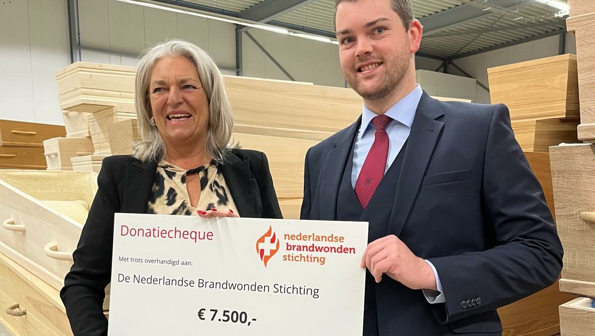 Grafkistenfabriek Hoogland schenkt cheque aan Brandwonden Stichting