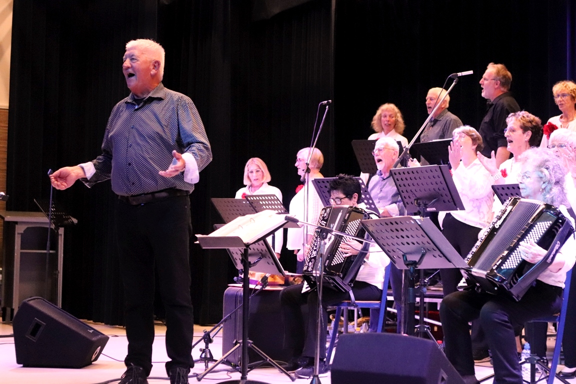 KOLLUM – Vrijdagavond was er een feestelijke avond in De Colle, het Amusementskoor “Haven in Zicht” vierde haar 25-jarig jubileum met een zaal vol familie, bekenden en liefhebbers. Het koor staat sinds 3 december 2014 onder leiding van Hans Eijsink. Een optreden van Griet Wiersma kon helaas niet doorgaan in verband met familieomstandigheden. Johnny de Vries werd bereid gevonden om deze avond op te treden.
