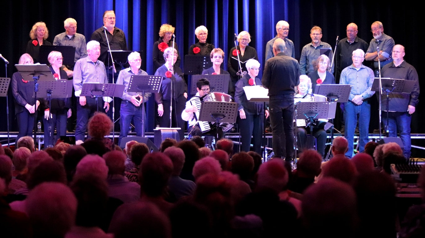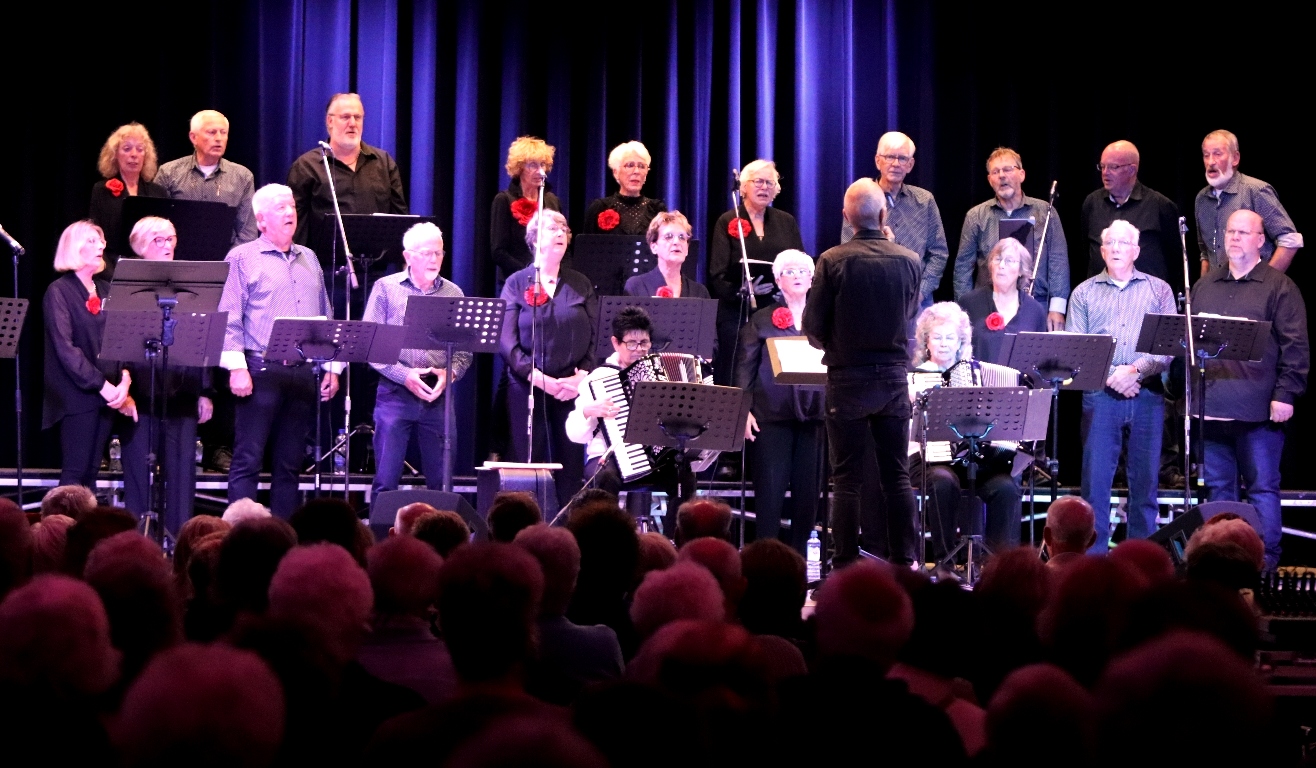 KOLLUM – Het was vrijdagavond 27 september een feestelijke avond in De Colle, het Amusementskoor “Haven in Zicht” vierde haar 25 jarig Jubileum met een zaal vol familie, bekenden en liefhebbers. Het koor, sinds 3 december 2014 onder leiding van Hans Eijsink.